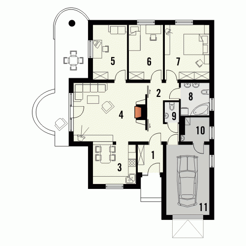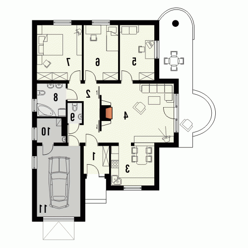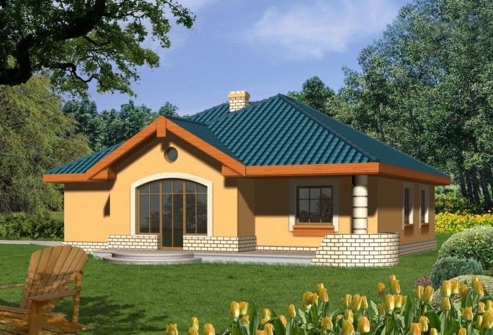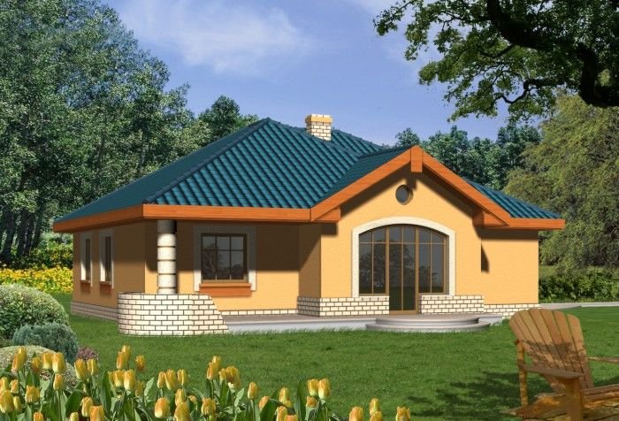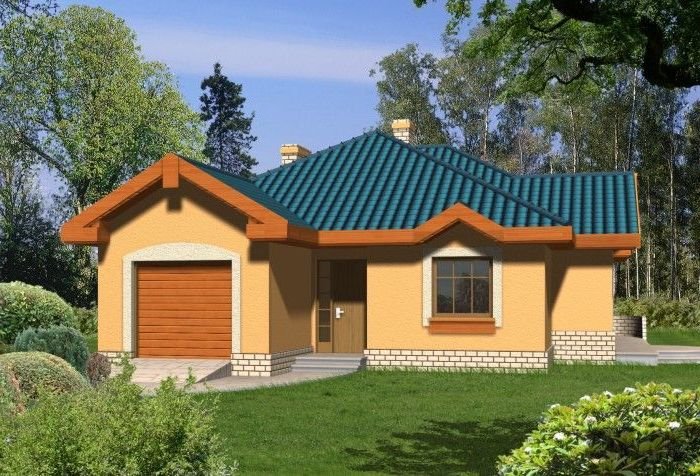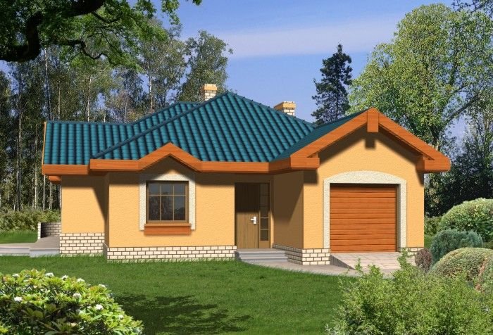 Budynek niepodpiwniczony parterowy z wbudowanym garażem jednostanowiskowym. W części dziennej znajduje się kuchnia i salon z kominkiem oraz wyjściem na taras poprzez efektowne drzwi balkonowe. Do dyspozycji domowników są 3 sypialnie wyposażone w wygodną łazienkę oraz osobne wc. Z garażu jest przejście do pomieszczenia gospodarczego mogącego pełnić funkcję domowego magazynu. Dokumentacja dostępna również w odbiciu lustrzanym.