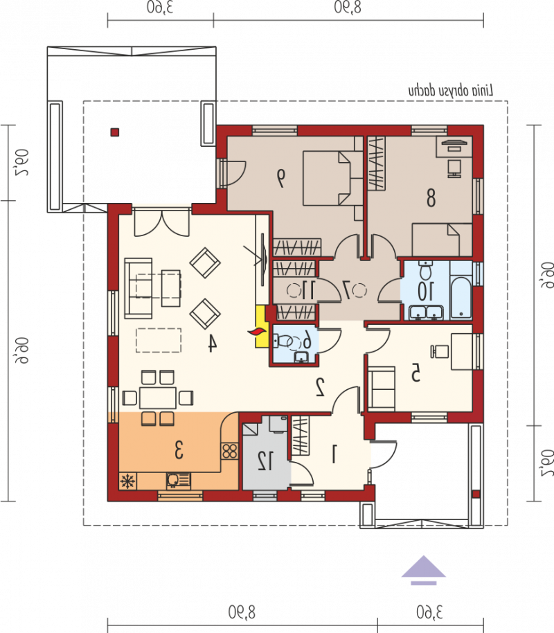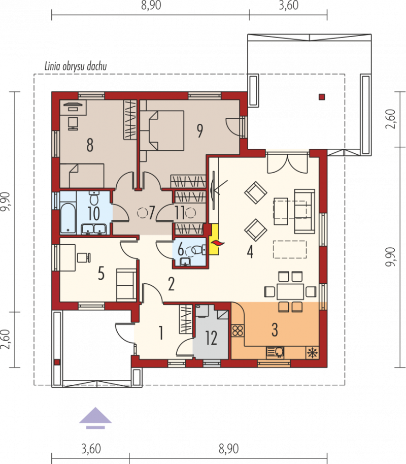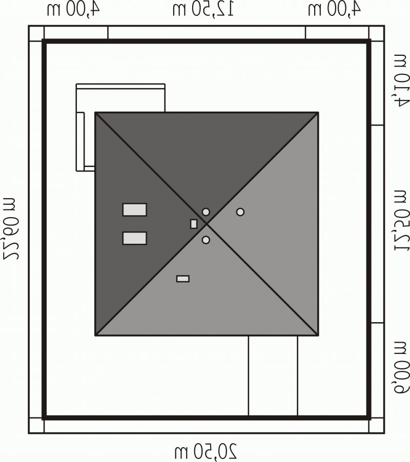 - Kąt nachylenia dachu 22.00°