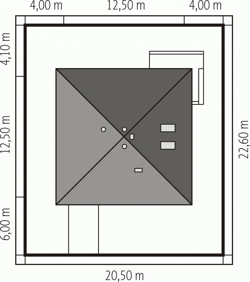- Min. wymiary działki 20.50x20.50 m