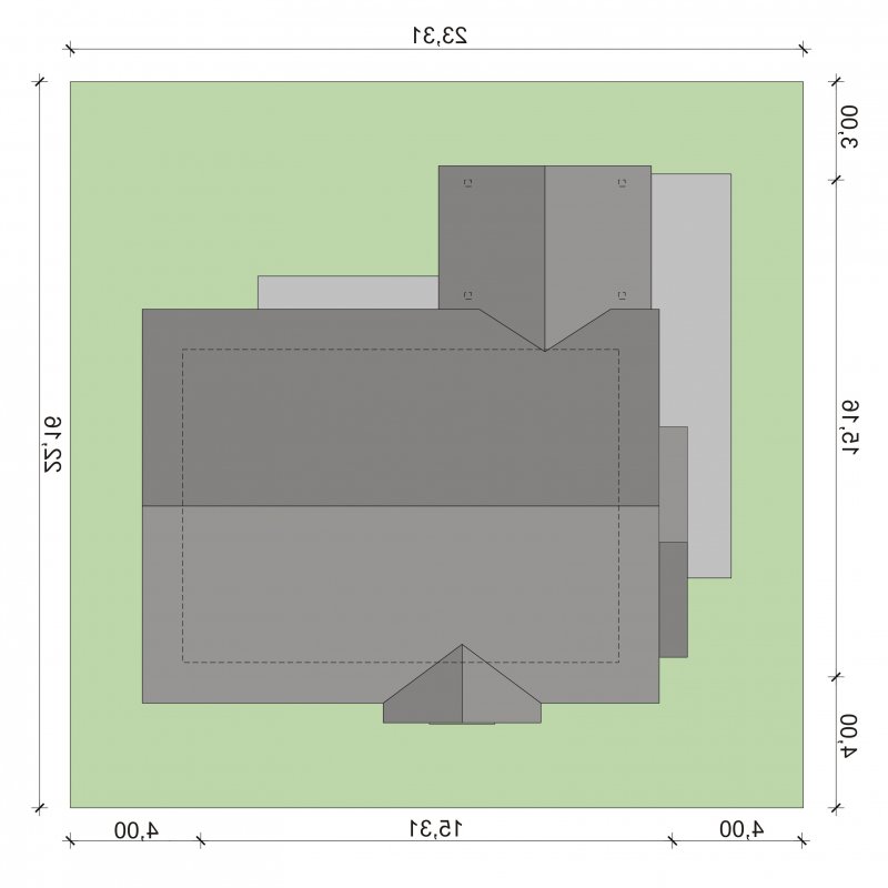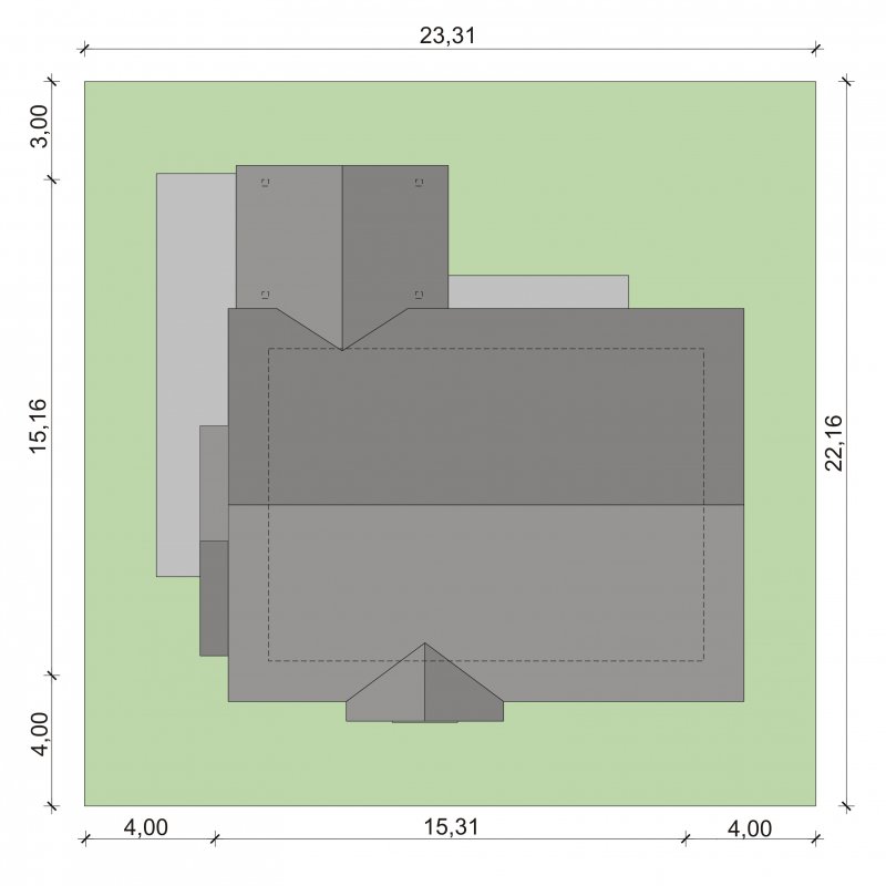 - Min. wymiary działki 22.31x23.16 m