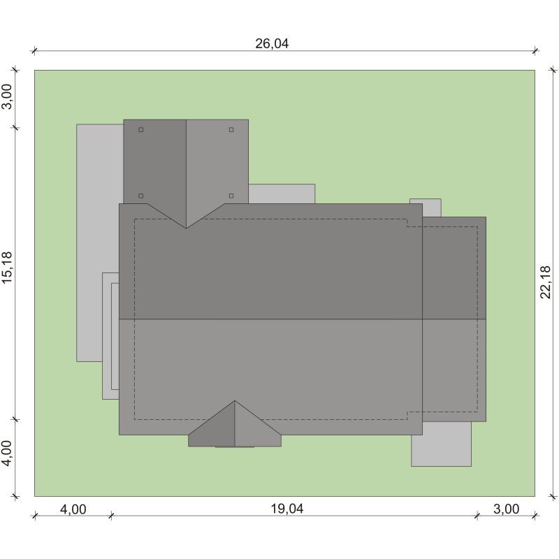 - Min. wymiary działki 26.04x22.18 m