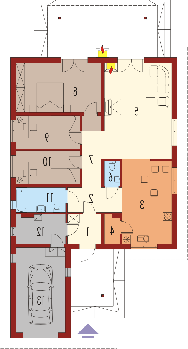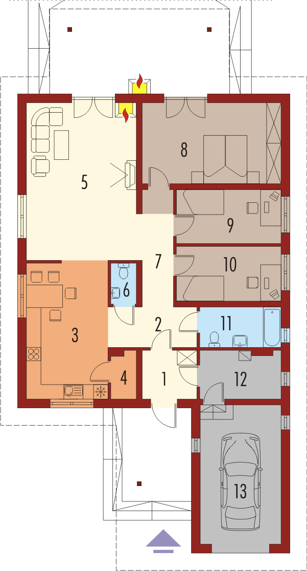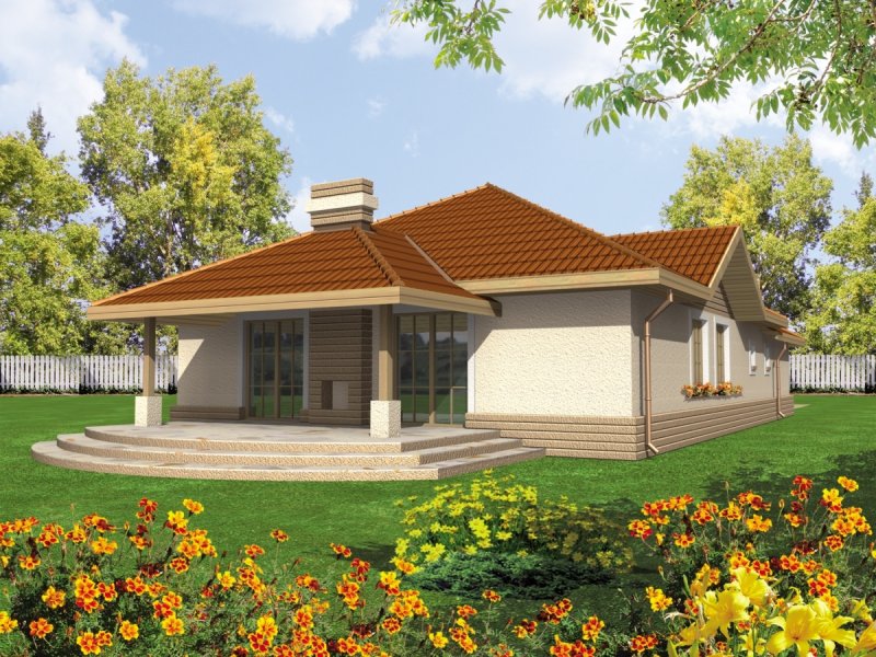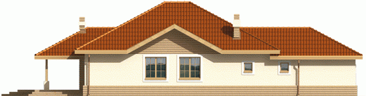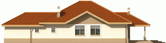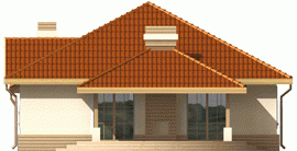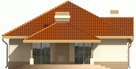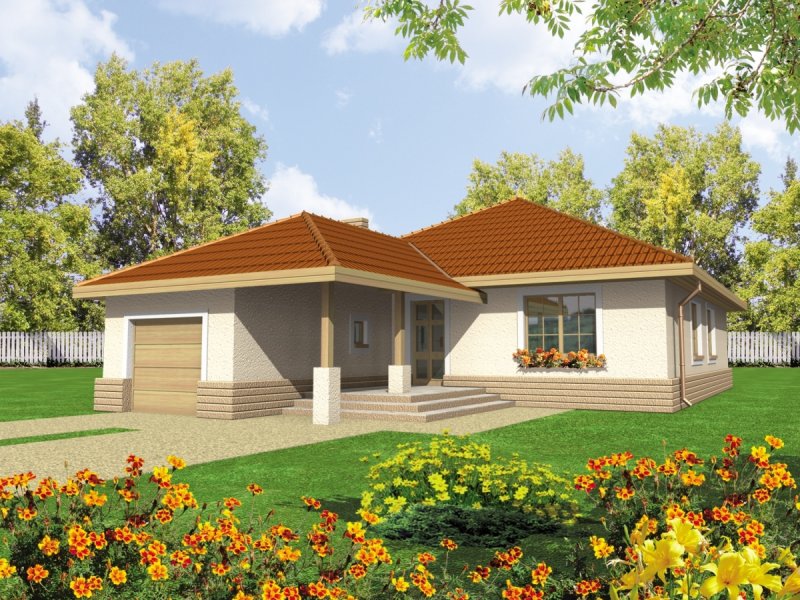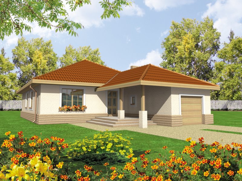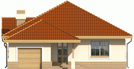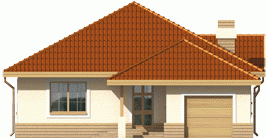 Dom parterowy, niepodpiwniczony, z wbudowanym garażem, przeznaczony dla 4-osobowej rodziny. Można go wybudować na dość wąskiej działce. W strefie dziennej zaprojektowano obszerny pokój dzienny połączony z jadalnią i kuchnią. Strefa nocna mieści trzy sypialnie i łazienkę. Nad parterem znajduje się strych.