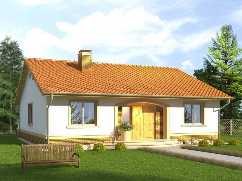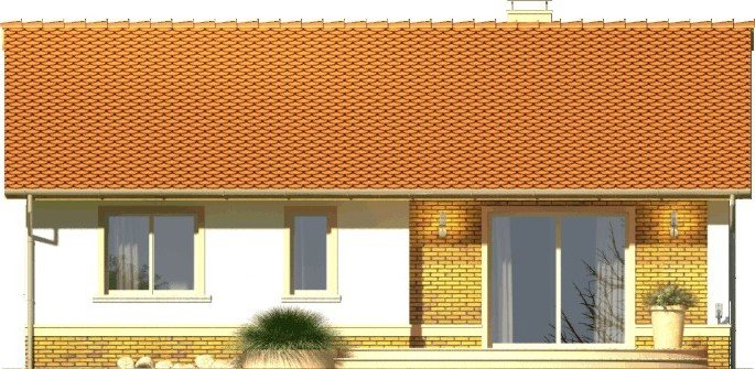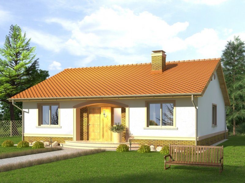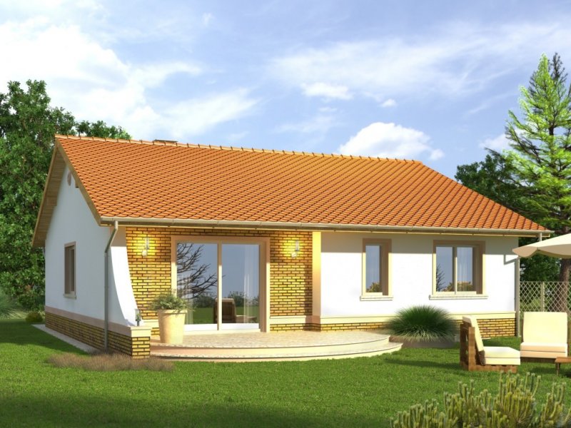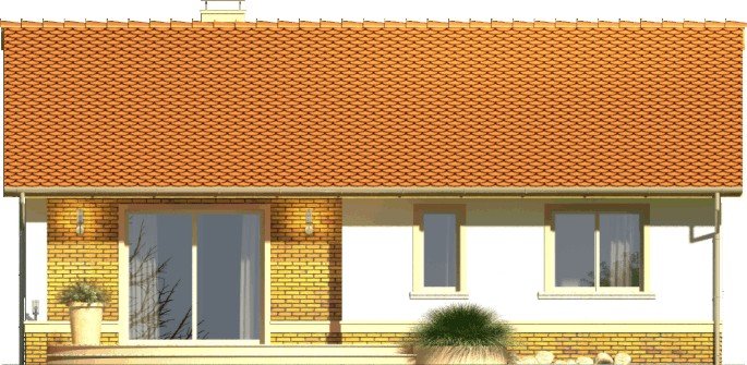 Dom Limonka to tani budynek niepodpiwniczony bez garażu z dachem dwuspadowym. Brak poddasza użytkowego i masywnego stropu nad parterem znacząco obniża jego koszt budowy. Klasyczne fasady mają okna ujęte w opaski oraz obłożony płytkami cokół zwieńczony gzymsem. Wejście podkreślone jest łukowym podcieniem i również klinkierowa okładziną na ścianach. Od strony ogrodu taras, na który prowadzi wyjście z salonu poprzez przesuwne drzwi balkonowe. Projekt w sprzedaży w wersji standard oraz w odbiciu lustrzanym. Wnętrze domu to jednoprzestrzenna strefa dzienna z salonem oraz kuchnią ze spiżarnią i strefa nocna z trzema sypialniami. W dużej łazience mieści się zarówno wanna jak i prysznic. W hallu i wiatrołapie przewidziano miejsca na duże szafy. Pomieszczenie gospodarcze dostępne z wiatrołapu. W projekcie ściany zewnętrzne są wykonane z bloczków gazobetonowych z dociepleniem. Cokoły i fragmenty ścian okładane płytkami klinkierowymi albo ceramicznymi. Sufit z płyt gipsowo-kartonowych jest podwieszany bezpośrednio do elementów więźby. Pokrycie dachu można zastosować dowolne: dachówkę cementową albo ceramiczną lub też inny materiał wybrany na etapie adaptacji. Dopuszcza się wprowadzenie zmian wszystkich materiałów na dowolnie wybrane przez inwestora.