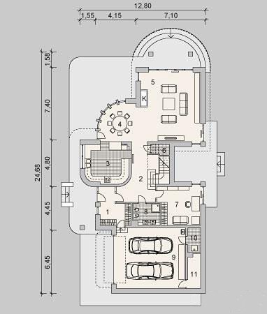 Projekt LK&1111 to piętrowy dom dla osób ceniących nowoczesność w nieco tradycyjnym wydaniu. Bryła przyjmuje nietuzinkowy kształt, a w połączeniu z przestronnymi wnętrzami oraz ciekawym wykończeniem staje się miejscem nie tylko funcjonalnym ale i eleganckim.