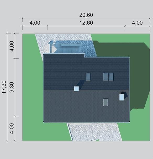 - Min. wymiary działki 17.30x20.60 m