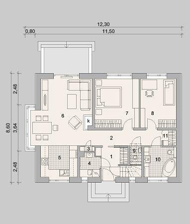 - Pokrycie dachu: dachówka ceramiczna Koramic firmy Wienerberger