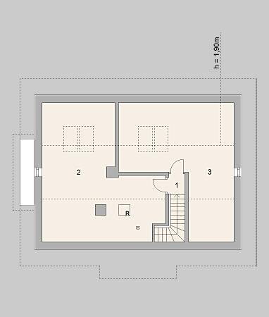Projekt tradycyjnego domu, posiadającym pomieszczenie strychowe.