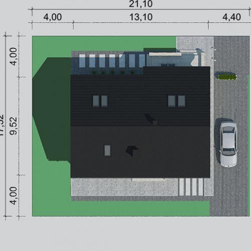 - Min. wymiary działki 21.10x17.52 m