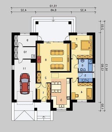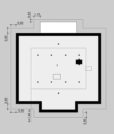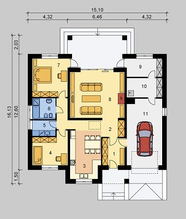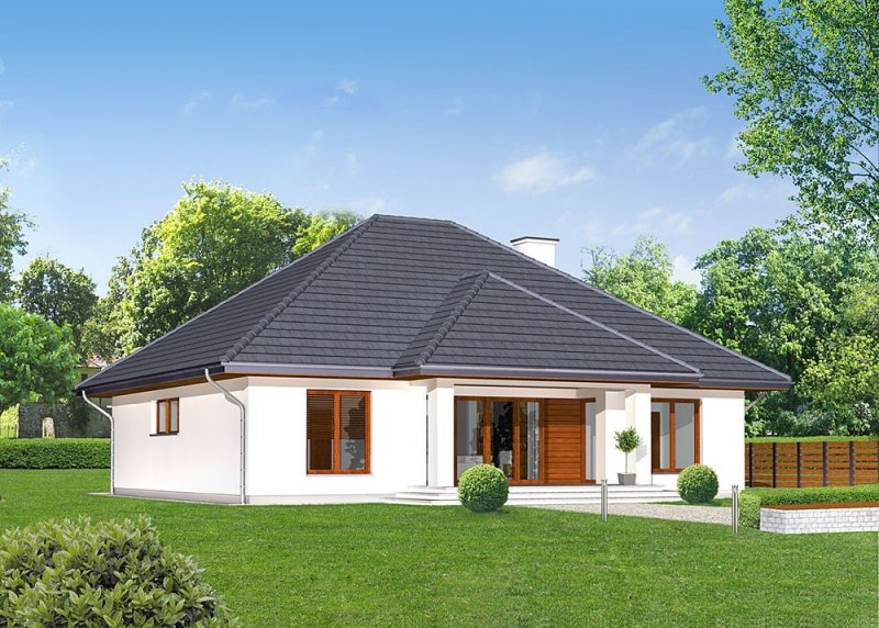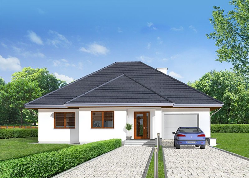 Dom jednorodzinny, parterowy z garażem jednostanowiskowym.