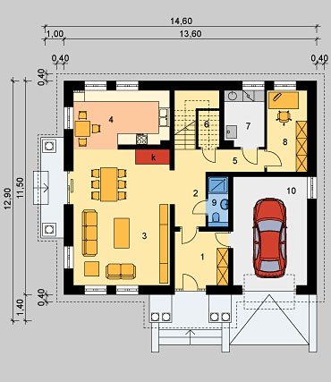 Dom jednorodzinny, parterowy,niepodpiwniczony z użytkowym poddaszem i jednostanowiskowym garażem.