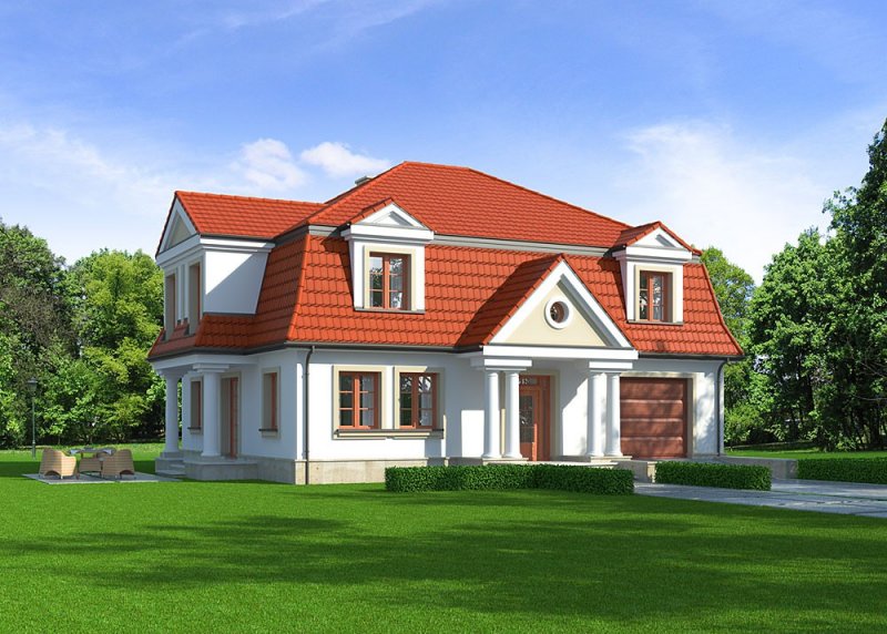 - Pokrycie dachu: dachówka ceramiczna