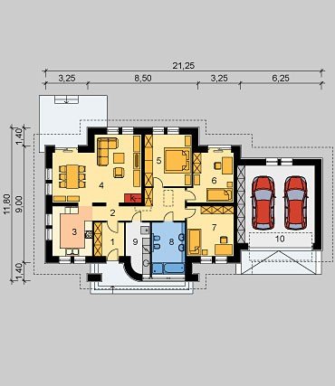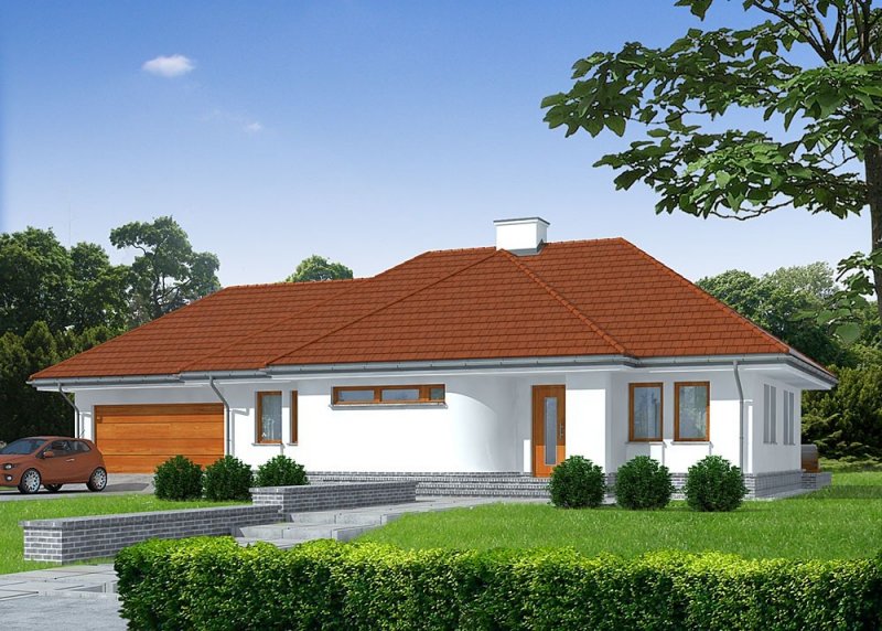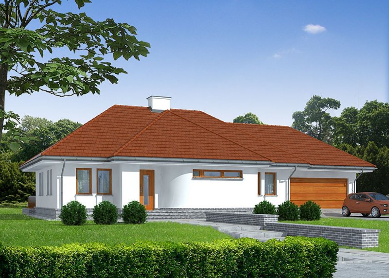 Do jednorodzinny parterowy, niepodpiwniczony, z dwustanowiskowym garażem.