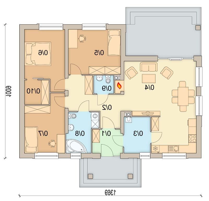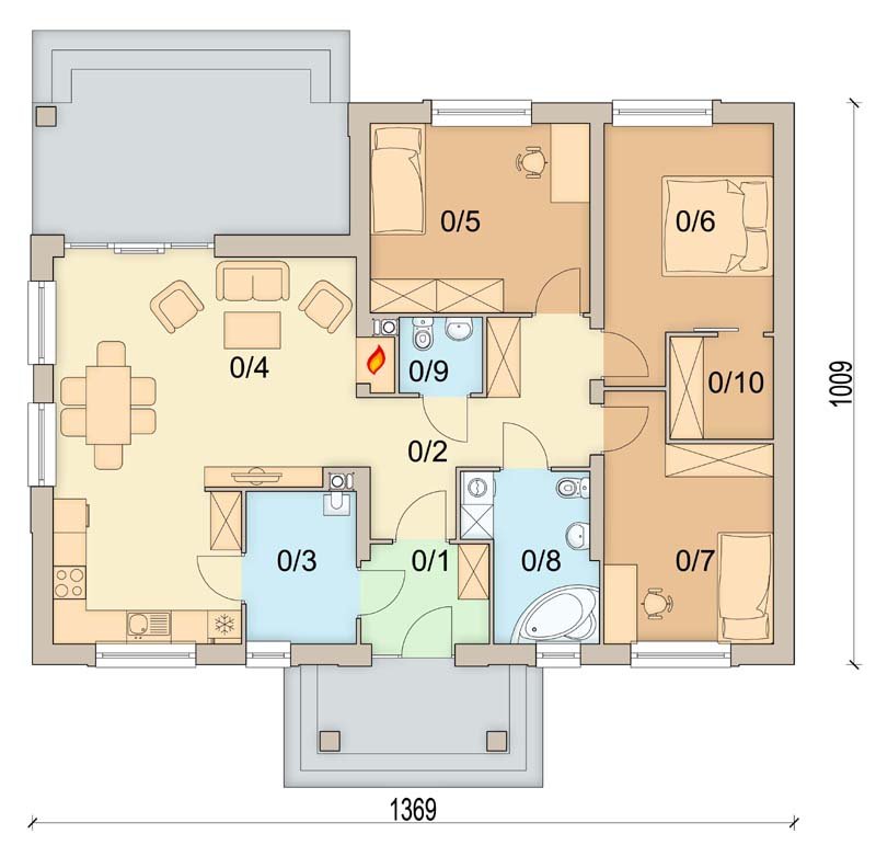 Malibu 2 to dom parterowy w podmiejskim stylu, przeznaczony dla 4-5 osobowej rodziny. Mimo niewielkich rozmiarów , dzięki dobrze zagospodarowanej przestrzeni, będzie bardzo wygodny w użytkowaniu. Niewątpliwym atutem projektu jest jasny podział na strefę ogólnodostępną i prywatną - przeznaczoną tylko dla mieszkańców. W tej drugiej zlokalizowano trzy sypialnie, dużą łazienkę z miejscem na pralkę i szafę wnękową, oraz garderobę. W domu przewidziano również pomieszczenie gospodarcze dostępne z wiatrołapu i kuchni, oraz duży strych. W projekcie zastosowano wyłącznie typowe i sprawdzone rozwiązania, co znacznie ułatwi budowę i zminimalizuje koszty eksploatacji.