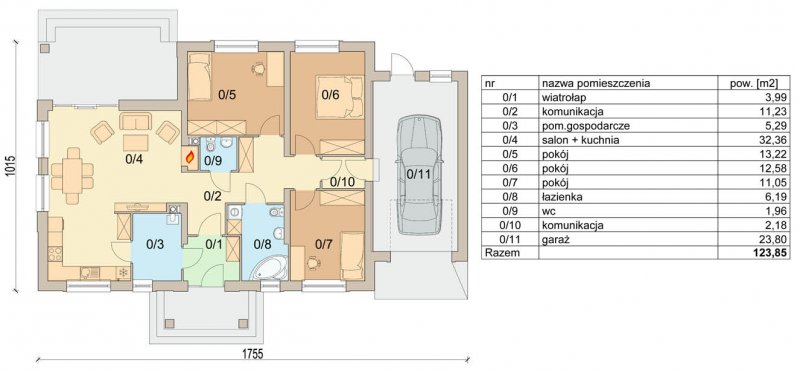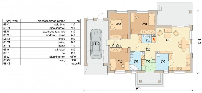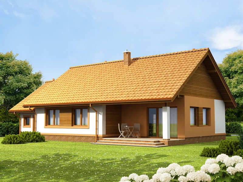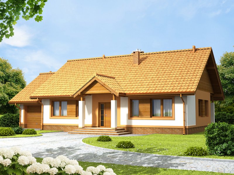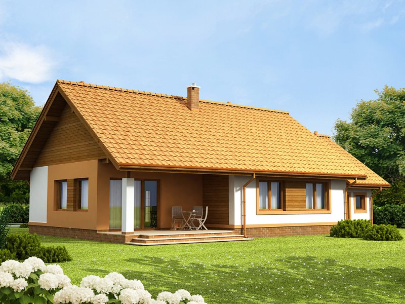 Malibu 2 G1 to niewielki dom parterowy z garażem, przeznaczony dla 4-5 osobowej rodziny. Mimo niewielkich rozmiarów , dzięki dobrze zagospodarowanej przestrzeni, będzie bardzo wygodny w użytkowaniu. Projekt posiada duży zadaszony ganek, oraz wiatrołap z miejscem na szafę. Niewątpliwym atutem projektu jest jasny podział na strefę ogólnodostępną i prywatną - przeznaczoną tylko dla mieszkańców. W tej drugiej zlokalizowano trzy sypialnie, oraz łazienkę z miejscem na pralkę i szafę w zabudowie. W projekcie przewidziano duży garaż z dodatkowym miejscem, np. na narzędzia ogrodnicze i stół warsztatowy. Zaprojektowano bezpośrednie przejście z garażu do domu. Przewidziano również pomieszczenie gospodarcze, oraz duży strych.