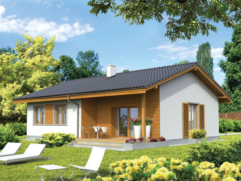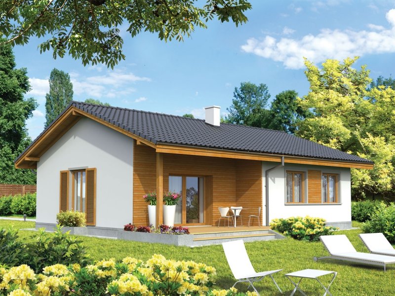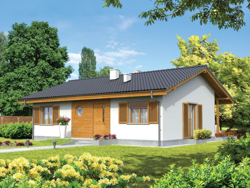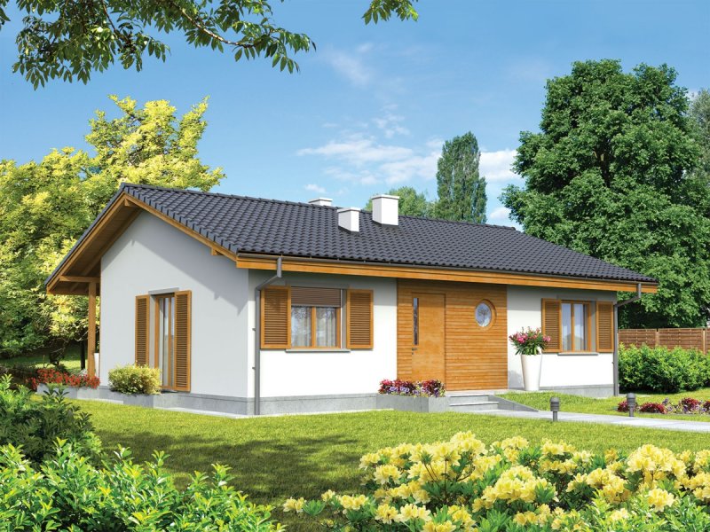 Dom parterowy, niepodpiwniczony, przeznaczony dla 2-3-osobowej rodziny. Na strefę dzienną składa się pokój dzienny z jadalnią, kuchnia ze spiżarnią oraz pomieszczenie gospodarcze. Strefa nocna to sypialnia, dwa pokoje i łazienka. Istnieje wersja projektu z garażem jednostanowiskowym.