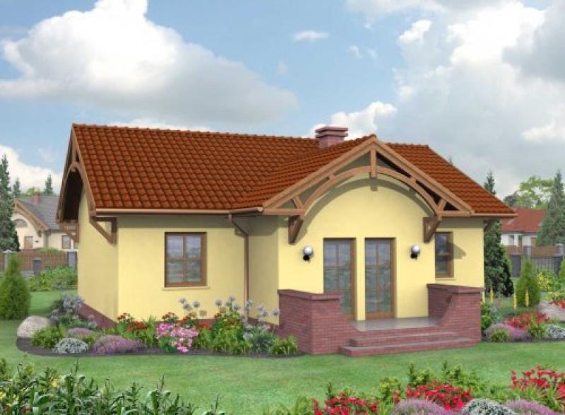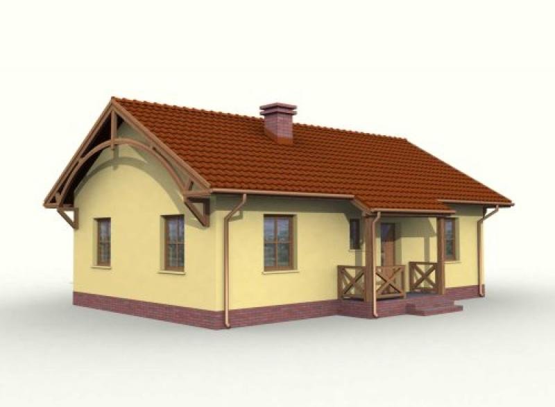 "Marbella" To niewielki domek jednorodzinny, niepodpiwniczony, ale posiadający możliwość adaptacji kotłowni na węgiel. Elewacja frontowa odznacza się zapraszającym do wewnątrz ganeczkiem, tył domu natomiast zachwyca niewielkim ryzalitem, zakończonym uroczym tarasem. Elewacje boczne oraz ryzalit można wykończyć uroczymi łukami z wygiętego drewna umieszczonymi pomiędzy zakończeniem dachu a ścianami domu. Prosta bryła budowli, kąt nachylenia dachu 30, gwarantują niezwykłą funkcjonalność domu. Gdy już przejdziemy przez uroczy ganeczek, znajdziemy się wewnątrz domu. Tutaj – bezpośrednio z wiatrołapu, będącego pierwszym pomieszczeniem, z jakim się zetkniemy, możemy przejść do kotłowni, obok której znajduje się wc. Z wiatrołapu można przejść także do hallu, łączącego pozostałe pomieszczenia domu. Do ściany południowo-zachodniej przylega tutaj obszerna łazienka, gdzie można umieścić obszerną wannę, a także kabinę prysznicową. Obok łazienki przewidziano miejsce na kuchnię z aneksem jadalnym. Po przeciwległej stronie domu umieszczono sypialnię oraz pokój, w którym w zależności od potrzeb można stworzyć sobie wygodny gabinet lub urządzić pokój dla dziecka. Sercem całego domu będzie zapewne, przylegający do ściany północnej, obszerny pokój dzienny, z którego można wyjść na taras. Pomieszczenia zostały tak rozłożone, by żadne nie było pomieszczeniem przechodnim. Ten domek jest wygodnym rozwiązaniem dla małżeństwa z jednym dzieckiem lub dla osób pragnących własnego domu, przy zminimalizowanych kosztach budowy i eksploatacji. Projekt Marbella to nie tylko przemyślane i ekonomiczne rozwiązanie, ale także urok i szyk. Dom nie ma dużej powierzchni, ale dzięki temu będzie niedrogi w utrzymaniu. Projekt składa się z części architektonicznej, konstrukcyjnej, wewnętrznych instalacji wod.-kan, c. o. i elektrycznej. W projekcie załączone są podstawowe zestawienie stali, drewna i stolarki okienno-drzwiowej. Do projektu dołączamy bezpłatną zgodę na wprowadzenie zmian, oświadczenie projektantów o wykonaniu projektu zgodnie z obowiązującymi normami i przepisami oraz kserokopie uprawnień projektantów wraz z aktualnym wpisem do izby. W przypadku zamówienia projektu w technologii lekkiej, drewnianej konstrukcji szkieletowej, powierzchnia użytkowa budynku jest o około 7% większa.