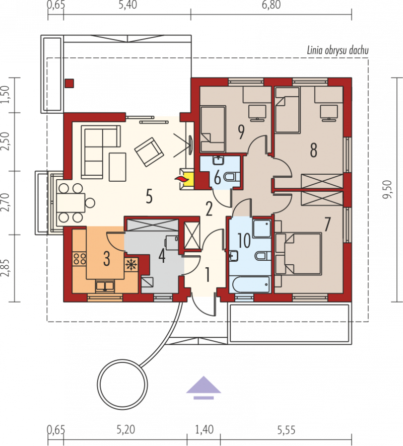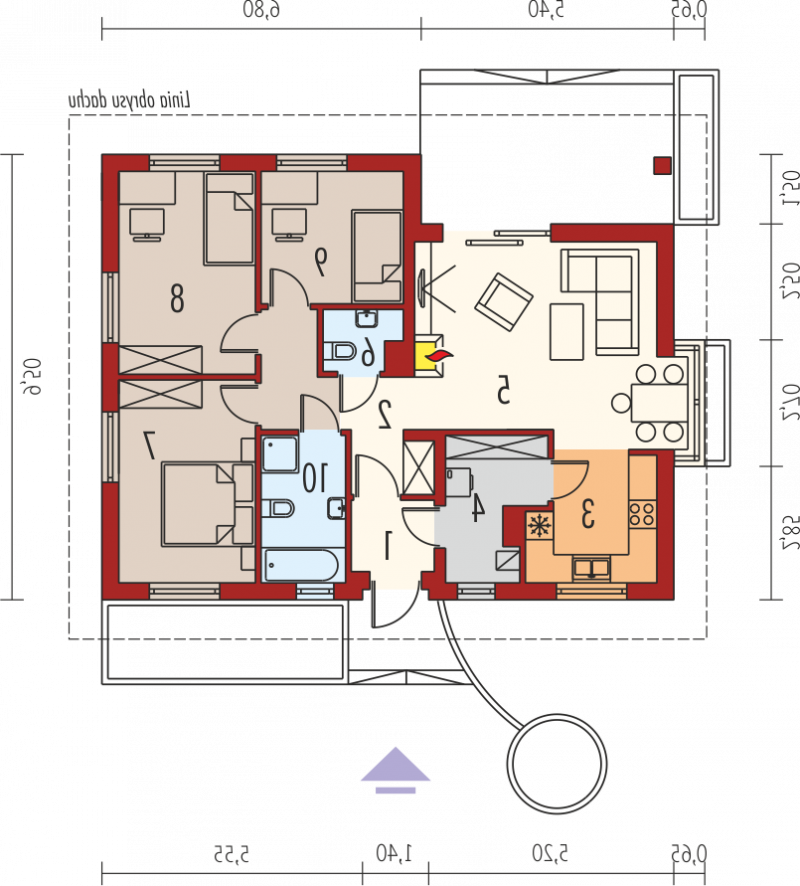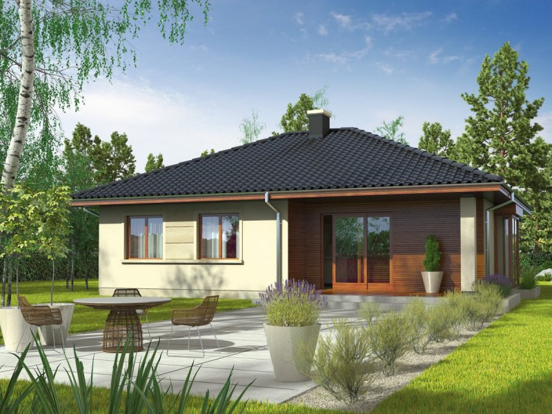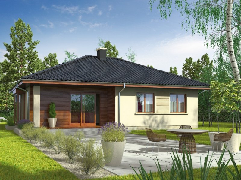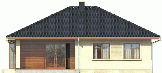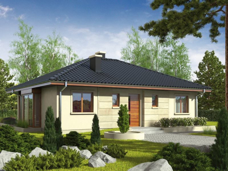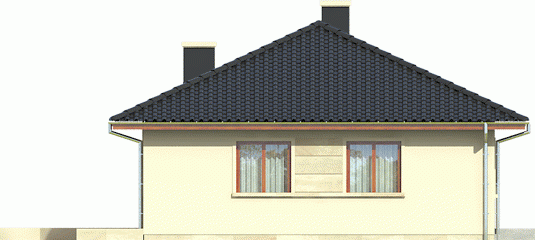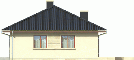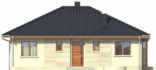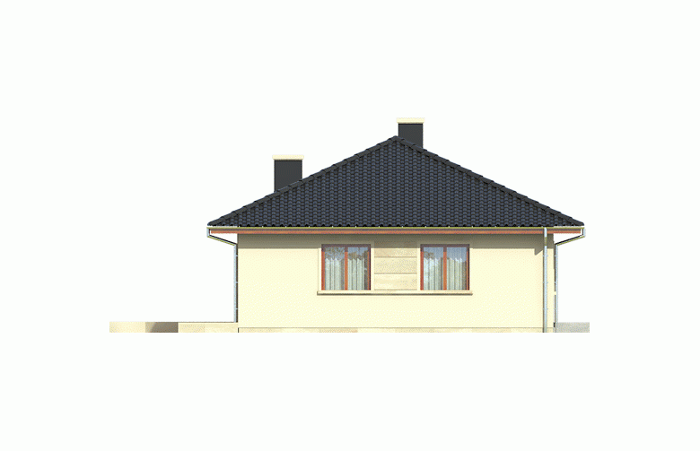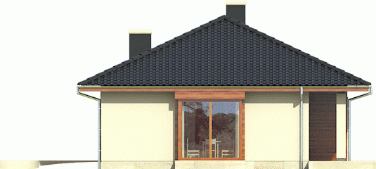 Dom parterowy, niepodpiwniczony. Przeznaczony dla 3-4-osobowej rodziny. Dzięki przemyślanemu układowi pomieszczeń, na stosunkowej niedużej powierzchni udało się zaaranżować funkcjonalną i komfortową przestrzeń. Na jednej kondygnacji mieści się zarówno strefa dzienna, jak i nocna, które zostały od siebie wyraźnie oddzielone. Strefę dzienną tworzy duży salon z częścią jadalną oraz kuchnia z dostępem do pomieszczenia gospodarczego. Strefa nocna to trzy sypialnie z dużą łazienką. Dodatkowo, udało się tu zmieścić niewielką toaletę. Margo to klasyczna elegancja, pełna słonecznego uroku. Dom posiada czytelny układ funkcjonalny – strefa dzienna integruje domowników wokół wspólnych zajęć, a wyraźnie oddzielona strefa nocna zapewnia komfort i poczucie intymności. Margo to propozycja dla miłośników tradycyjnej architektury i sprawdzonych rozwiązań. Istnieje możliwość zmiany kąta nachylenia dachu do 30° oraz adaptacji poddasza na strych.