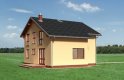 Na parterze znajduje się hol, łazienka, kuchnia, pokój dzienny, pokój i kotłownia. Na poddaszu zlokalizowano trzy pokoje, galerię i łazienkę. Bryłę budynku stanowi prostopadłościan nakryty dachem symetrycznym dwuspadowym o kącie nachylenia połaci 28°.