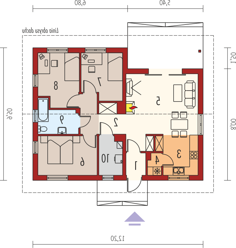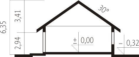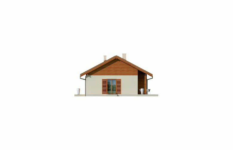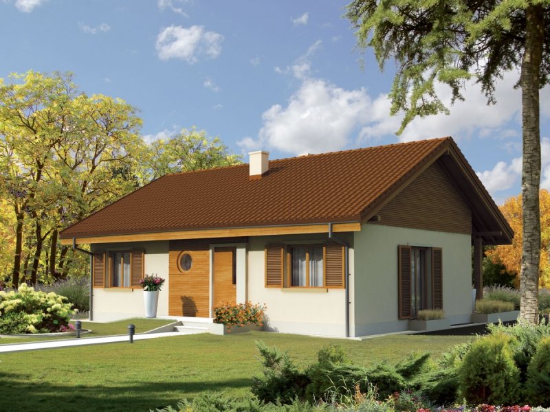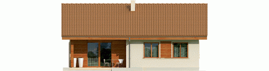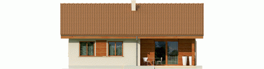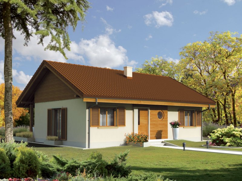 Dom parterowy, niepodpiwniczony, przeznaczony dla 3-4 osobowej rodziny. Na strefę dzienną składa się salon z jadalnią oraz kuchnia ze spiżarnią. Część nocna to sypialnia, dwa pokoje oraz łazienka. W pomieszczeniu gospodarczym znajdującym się przy wiatrołapie znalazło się miejsce na pralkę. Istnieją wersje projektu z garażem jedno i dwustanowiskowym.