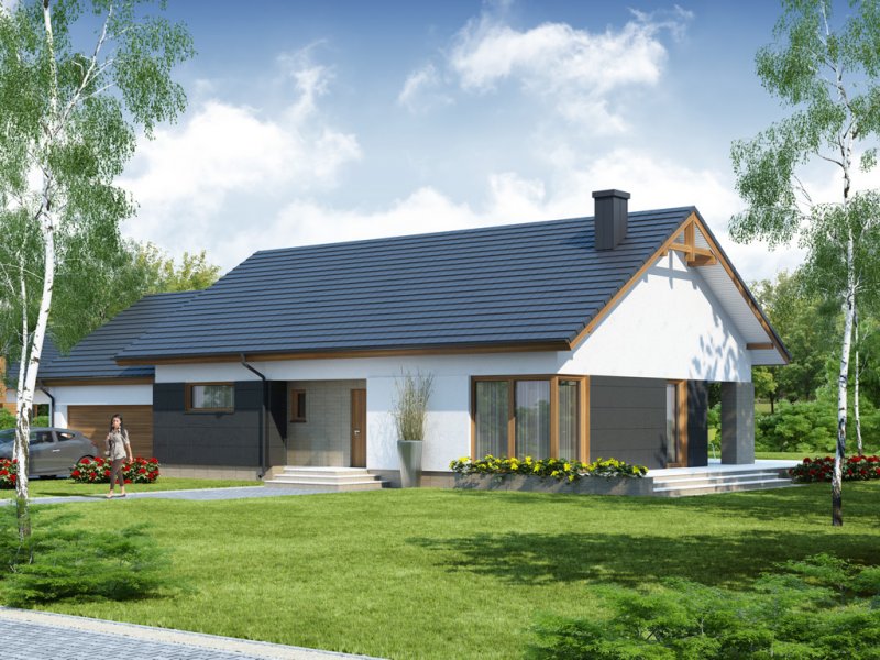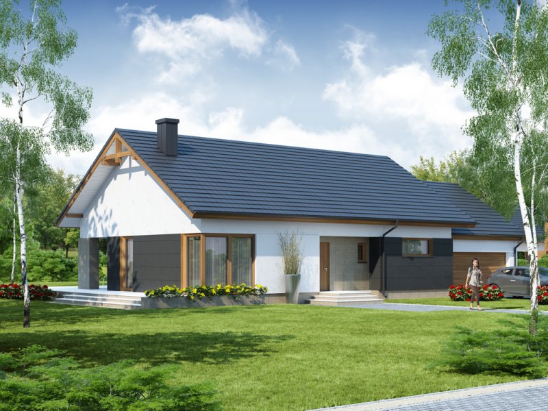 Dom posiada swoją wersję z garażem jednostanowiskowym Midas.