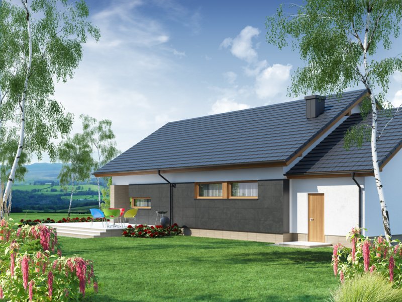 Projekt w standardzie posiada dodatkowo projekt rekuperacji oraz ogrzewania kominkiem z płaszczem wodnym.