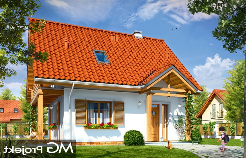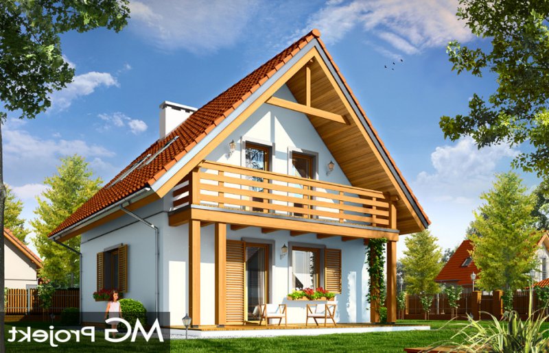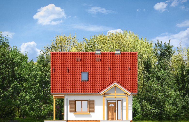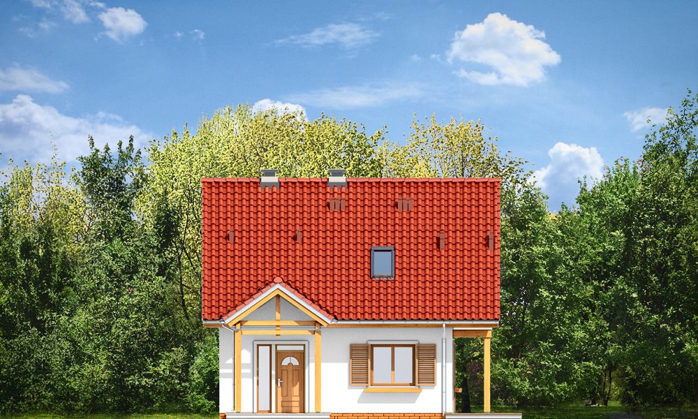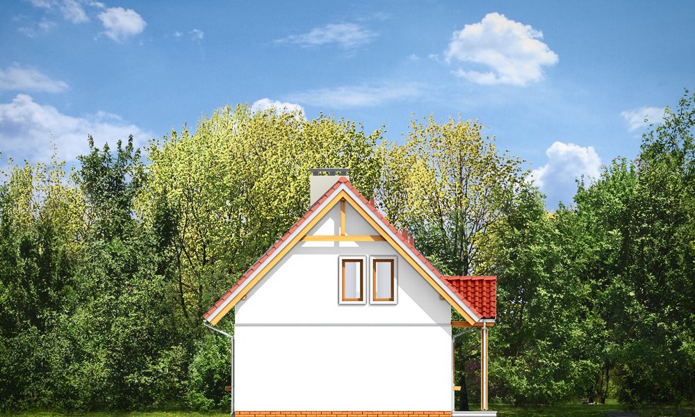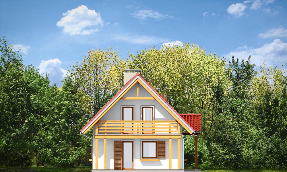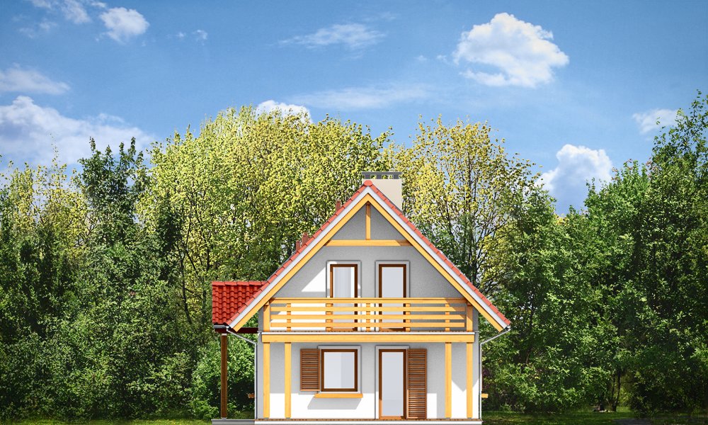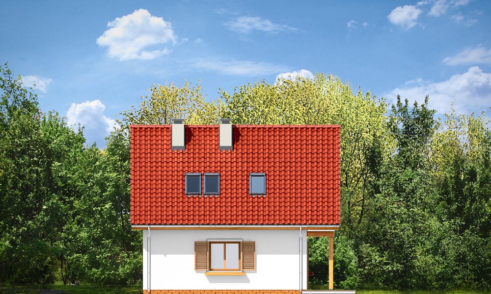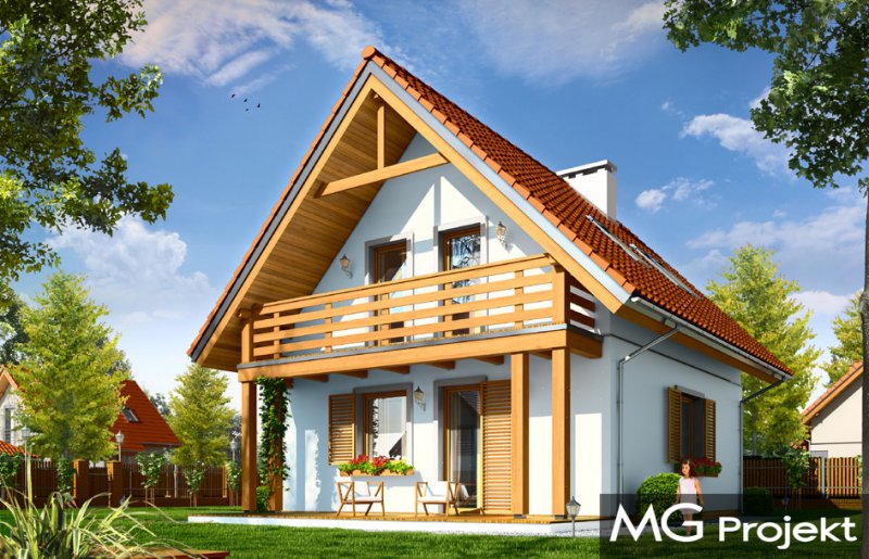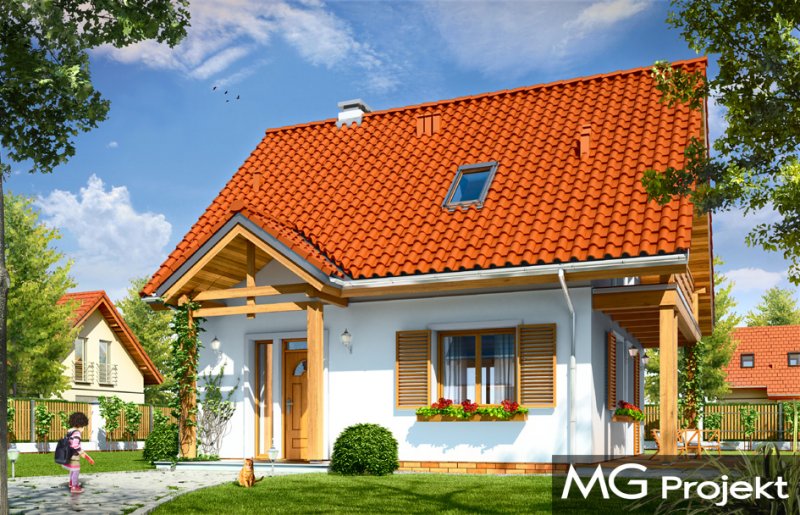 Milutki przeznaczony jest dla trzy-czteroosobowej rodziny. Dom został zaprojektowany jako jednorodzinny całoroczny, może też służyć jako budynek letniskowy. Prostokątny rzut parteru został przykryty dwuspadowym dachem, mieszczącym w sobie poddasze użytkowe. Ciekawą bryłę urozmaicono zadaszeniem tarasu i balkonem od strony ogrodu, oraz wspartym na dwóch kolumienkach daszkiem nad wejściem. Architektura domu łączy w sobie tradycyjną formę, z nowoczesnym detalem i materiałami. Projekt dzięki swojej bezpretensjonalności doskonale wpisuje się w każde otoczenie. Milutki dobrze będzie wyglądał i w górach, i na Mazurach :-). Wnętrze domu podzielono na część dzienną na parterze i sypialnie na poddaszu. Połączone pomieszczenia salonu, kuchni i holu tworzą dużą otwartą wspólną przestrzeń. Sprytnie umiejscowione schody na piętro są ozdobą pokoju dziennego. Centralnie umieszczony komin obsługuje zarówno kominek w salonie jak i kocioł w sąsiedniej kotłowni. Kotłownia zaprojektowana jako gazowa, może być łatwo dostosowana dla pieca na paliwo stałe. Na poddaszu znalazło się miejsce dla trzech niewielkich sypialni i łazienki. Ścianki działowe poddasza można łatwo i dowolnie przestawiać, zmieniając konfigurację pomieszczeń. Projekt uwzględnia bardzo dobre ocieplenia przegród. Dom jest energooszczędny - zastosowano w nim nowoczesne instalacje. Dzięki prostej i niedrogiej w realizacji konstrukcji z jednej strony i zastosowanym energooszczędnym technologiom z drugiej strony, dom będzie tani w budowie i późniejszej eksploatacji. Projekt jest idealną propozycją dla liczących pieniądze Inwestorów pragnących mieszkać w oszczędnym i uroczym domku jednorodzinnym. Pracownia posiada odbicie lustrzane projektu.