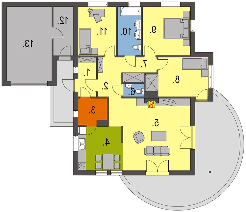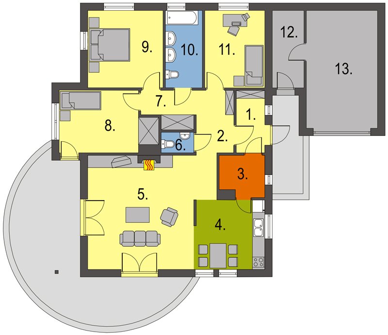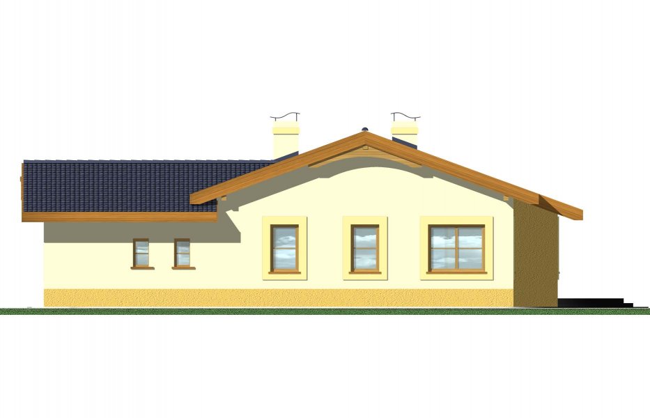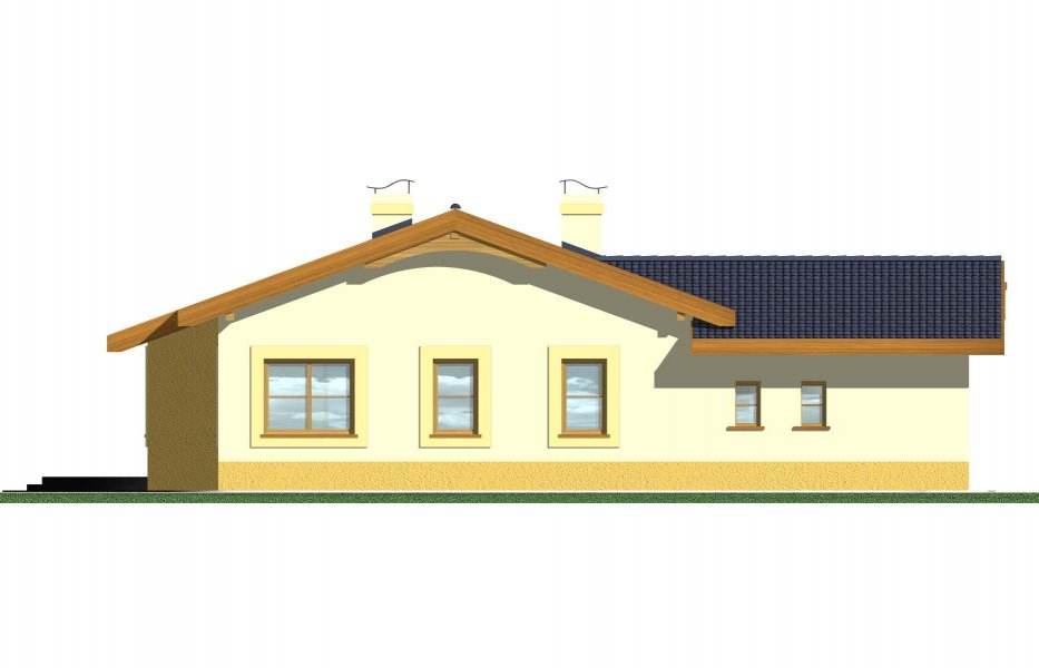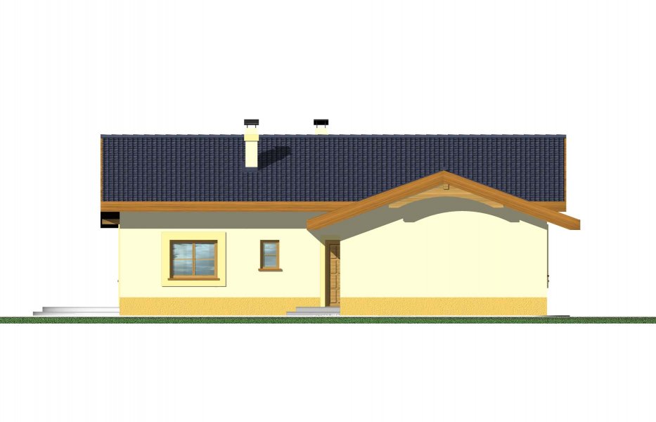 Domek parterowy, niepodpiwniczony, z trzema sypialniami i łazienką. Sercem domu jest przestronny salon z kominkiem, funkcjonalnie połączony z jadalnią i kuchnią.