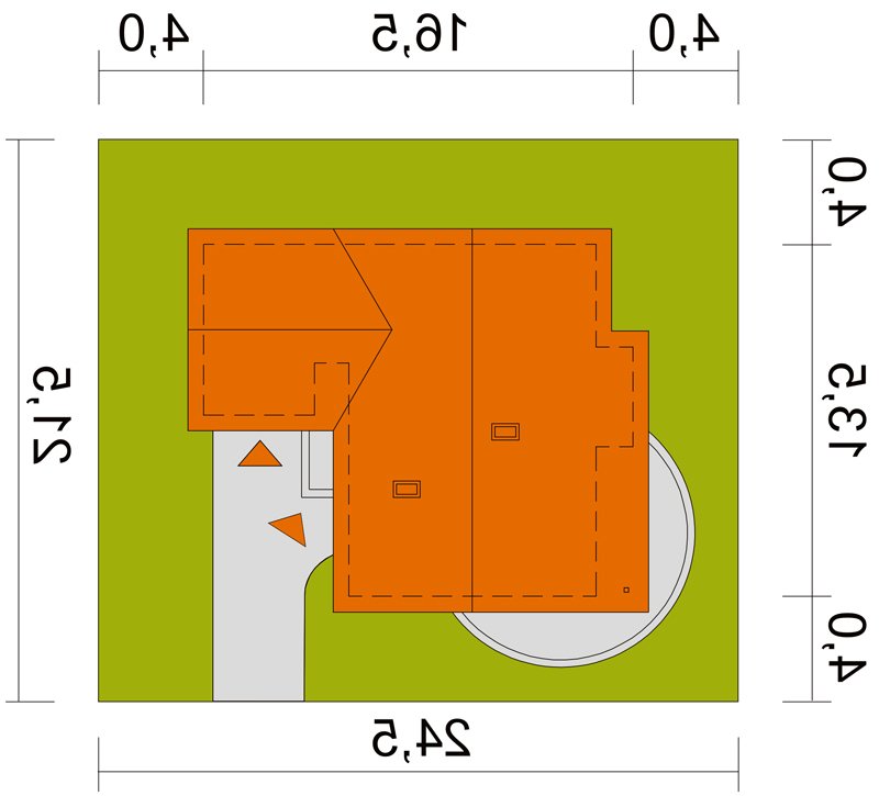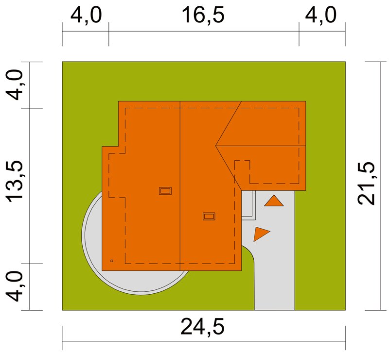 - Min. wymiary działki 24.50x21.50 m