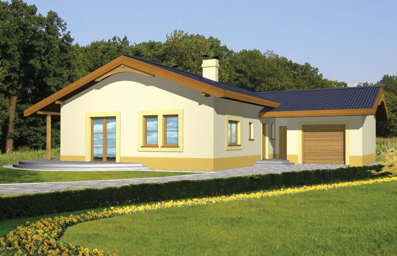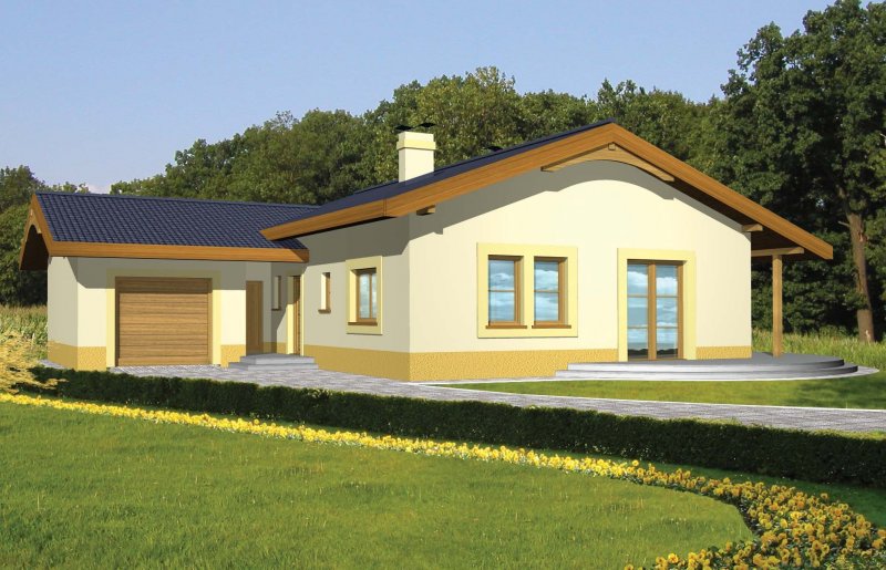 Dom ma lekką prostą konstrukcję, został zaprojektowany tak, aby połączyć wygodę i funkcjonalność z niedrogim wykonaniem. Jest to dom uniwersalny, który może być wybudowany na działkach z różnym usytuowaniem względem stron świata w tym również na działkę z wjazdem od południa. Dostępna wersja z garażem dwustanowiskowym oraz wersje w lustrzanym odbiciu.