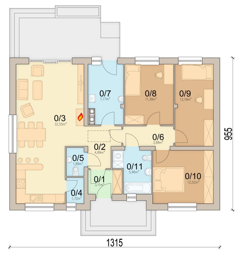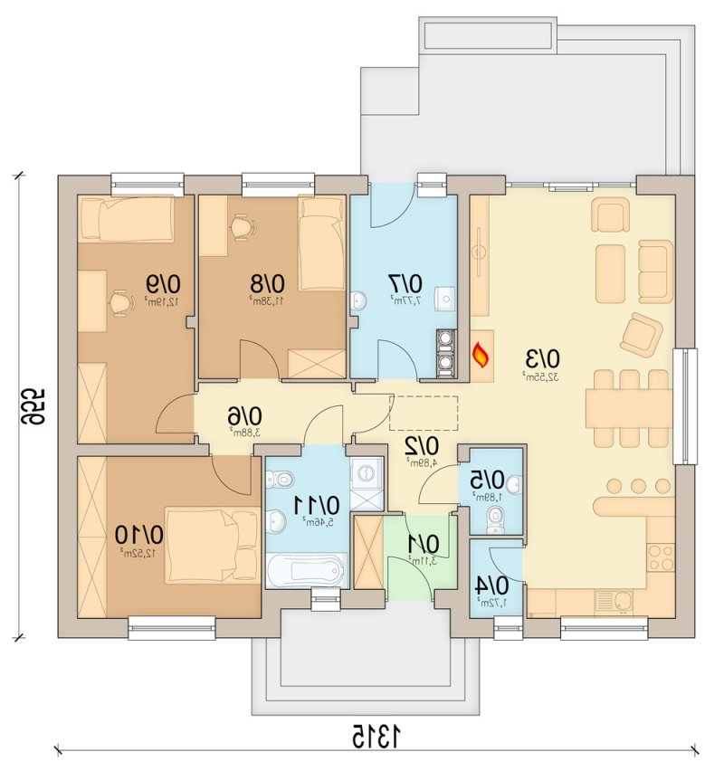 - salonkuchnia 32,55 m2