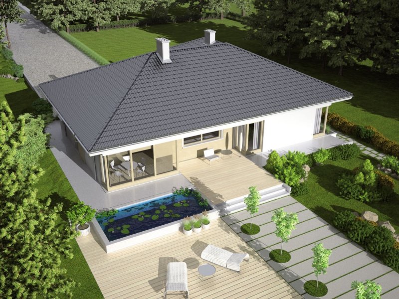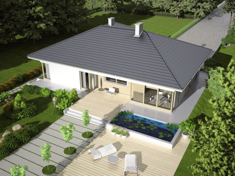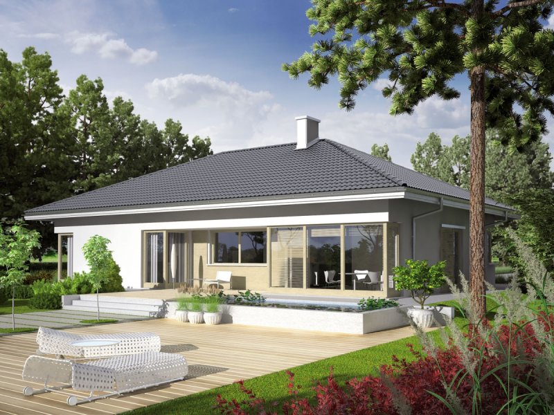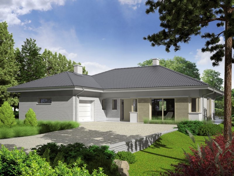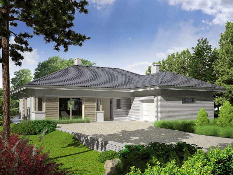 Dom parterowy, niepodpiwniczony (istnieje możliwość podpiwniczenia), z garażem jednostanowiskowym. Morgan II G1 urzeka swoją interesującą bryłą. Dużym atutem jest czytelny podział domu. Strefę dzienną tworzy atrakcyjny salon z kominkiem, kuchnia ze spiżarnią oraz obszerna jadalnia, która dzięki swoim przeszkleniom pozwala cieszyć się spożywaniem posiłków w bliskim sąsiedztwie ogrodu. Strefę nocną tworzą trzy wygodne sypialnie z wydzieloną garderobą oraz dwie łazienki. Dodatkową zaletą domu jest duże pomieszczenie gospodarcze z wyjściem na ogród, gdzie z łatwością zmieszczą się domowe sprzęty i narzędzia. Intrygującą częścią Morgan II G1 jest również przytulny, częściowo zadaszony taras. Istnieje również inna wersja projektu – Morgan G2, dom parterowy z poddaszem użytkowym, niepodpiwniczony (istnieje możliwość podpiwniczenia). W tym wariancie ciekawym rozwiązaniem jest dwustanowiskowy garaż z wjazdem, usytuowanym z boku budynku. Dzięki dużej ilości precyzyjnie rozplanowanych okien dom zyskuje ciepły, przytulny charakter. Dużym atutem Morgan G2 jest czytelny podział funkcjonalny – na parterze zaplanowano strefę dzienną, którą tworzy obszerna jadalnia, kuchnia ze spiżarnią, a także imponujący salon z kominkiem. Na parterze znajduje się również wygodny gabinet, sypialnia z łazienką i garderobą, a także dodatkowa łazienka i garderoba, a także duże pomieszczenie gospodarcze. Na poddaszu usytuowano strefę nocną – 3 komfortowe sypialnie, garderobę oraz łazienkę. Zaletą domu jest także dodatkowy strych, który w razie potrzeby można zaadoptować na pracownię lub wygodny pokój. Perfekcyjnym dopełnieniem funkcjonalnego układu Morgan II G1 jest częściowo zadaszony taras, który powstał z myślą o miłośnikach odpoczynku na świeżym powietrzu.