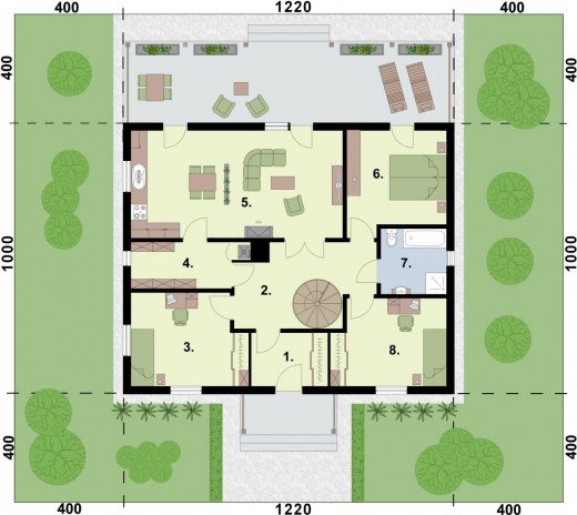 - Min. wymiary działki 18.00x20.20 m