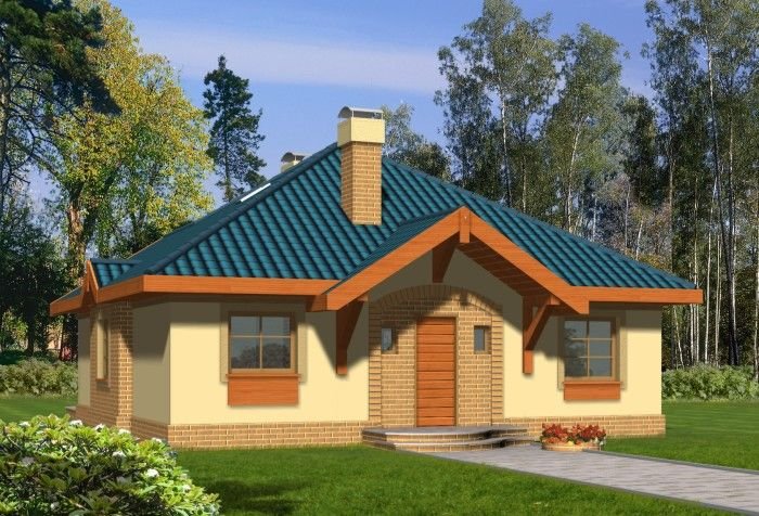 Ściany budynku zaprojektowano z betonu komórkowego z warstwą ocieplenia lub w innej technologii w ramach adaptacji. Strop i więźba drewniana, pokrycie dachówką ceramiczną lub cementową. Elewacje tynkowane, cokół i pozostałe elementy ozdobne okładane klinkierem.