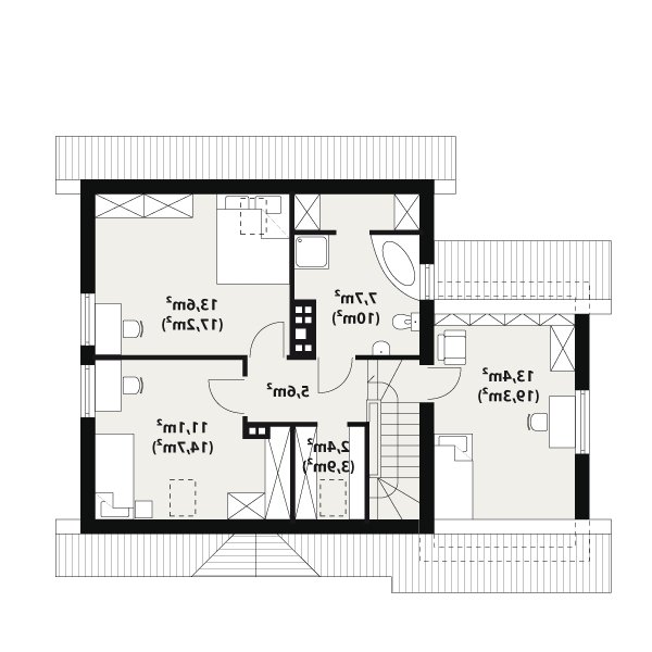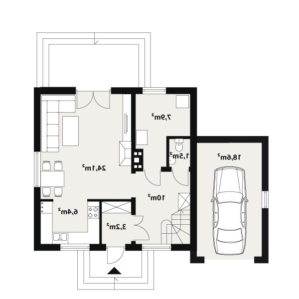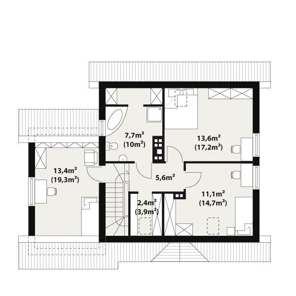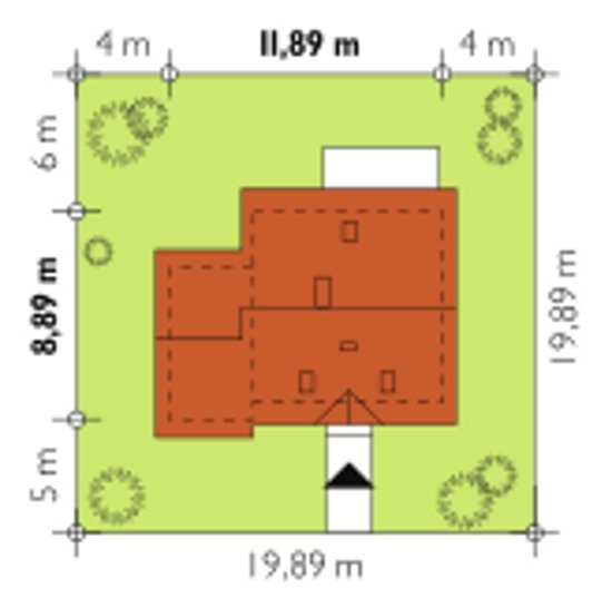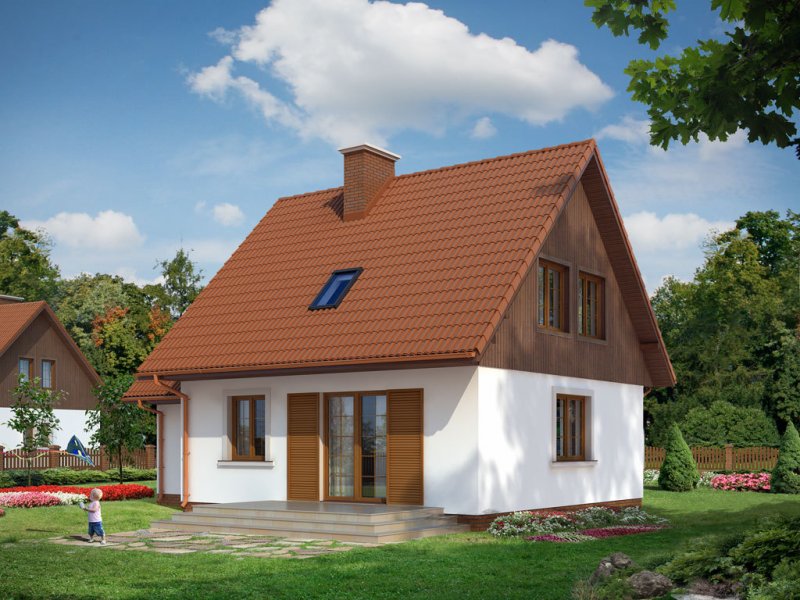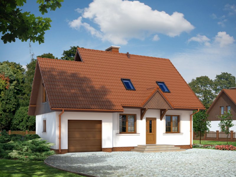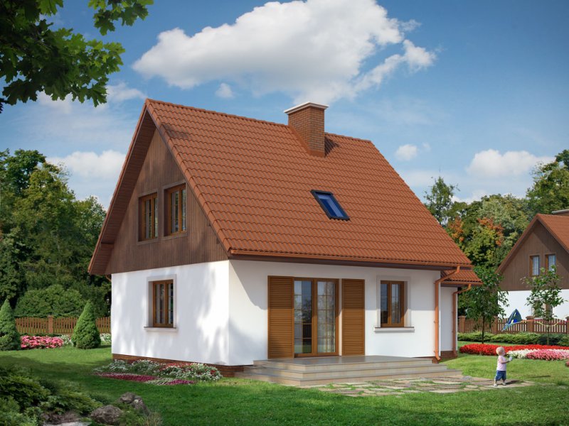 Dom jednorodzinny, wolno stojący, parterowy, z poddaszem użytkowym. Powiększona wersja domu „Orzeszek”. Garaż i dodatkowa sypialnia czynią ten dom optymalnym dla 4-osobowej rodziny. Wygodny i funkcjonalny, a dzięki możliwości rozłożenia budowy na etapy, prostej konstrukcji oraz nieskomplikowanej bryle jest to rozwiązanie na każdą kieszeń.