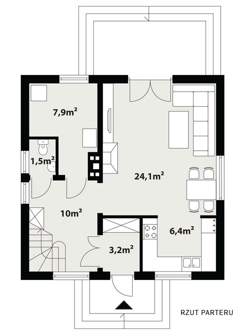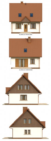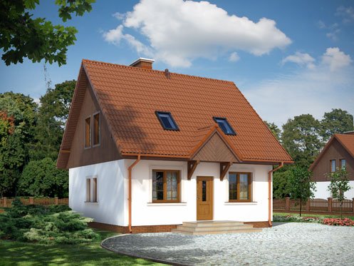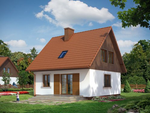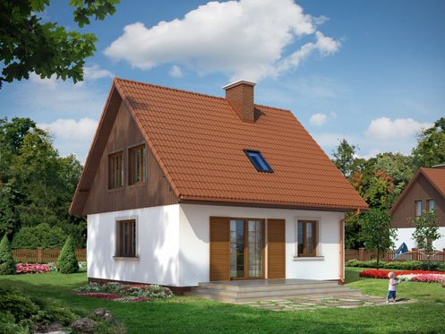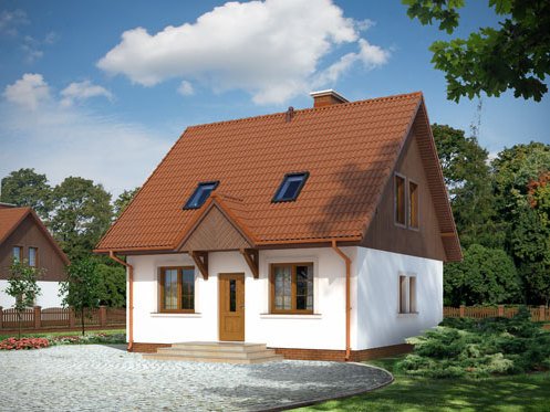 Nieduży, parterowy domek z wygodnym poddaszem. Projektowany z myślą o wygodzie i troską o niski koszt budowy. Rzadką zaletą tego domu jest hall doświetlony dużym oknem oraz przestronna kotłownia. Na uwagę zasługuje też komfortowa łazienka ze schowkiem oraz obszerna garderoba. Istnieje możliwość łatwej rozbudowy o garaż i dodatkową sypialnię.