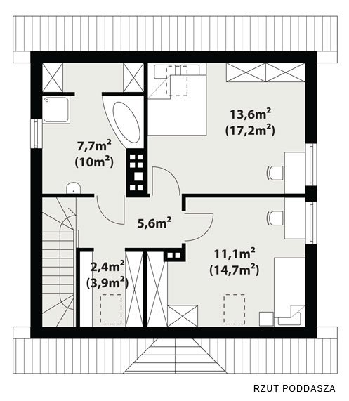 dach: dachówka cementowa lub blachodachówka