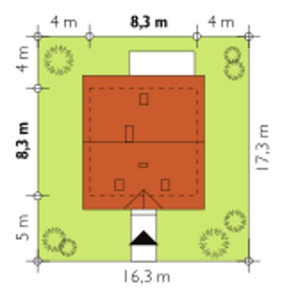 - Min. wymiary działki 17.30x16.30 m