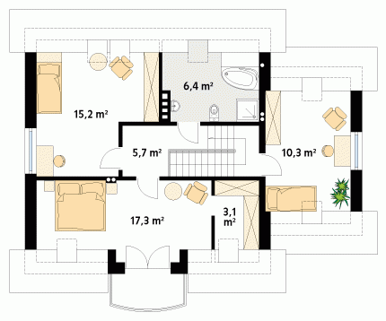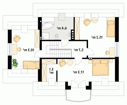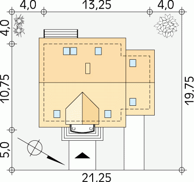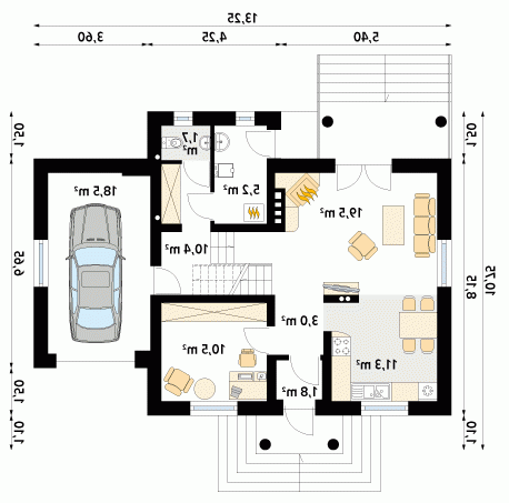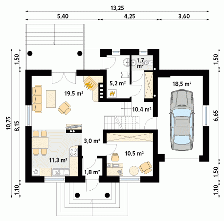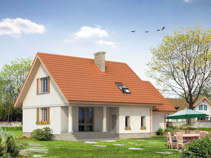 Mały dom mieszkalny, jednorodzinny. Na parterze zaprojektowano dodatkowy pokój. Na poddaszu znajdują się trzy przestronne pokoje. Architektura domu zawiera elementy, które jednoznacznie nawiązują do tradycyjnych domów polskich.