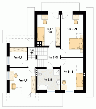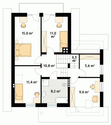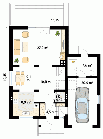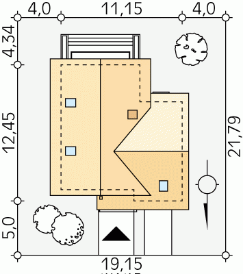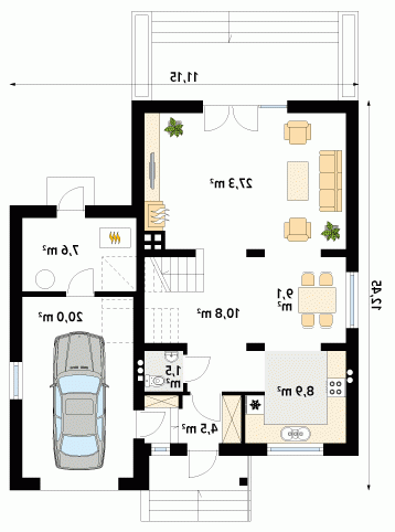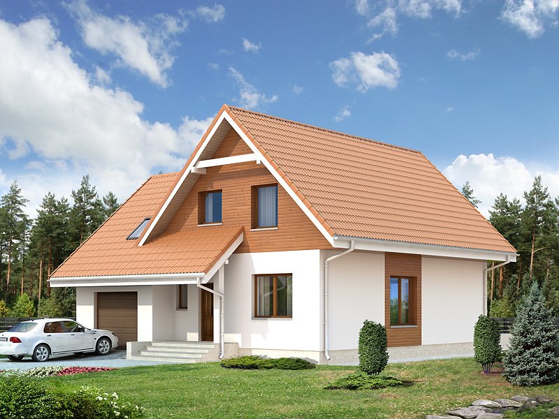 Budynek mieszkalny jednorodzinny z poddaszem użytkowym. Na parterze zaprojektowano pomieszczenia dzienne: salon, jadalnię, kuchnię oraz pomieszczenia o funkcji technicznej i gospodarczej. Na poddaszu zaprojektowano pomieszczenia o funkcji mieszkalnej. Na półpiętrze zaprojektowano pomieszczenie gospodarcze oraz pokój - gabinet.