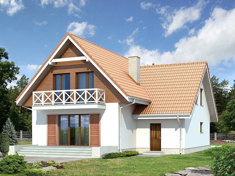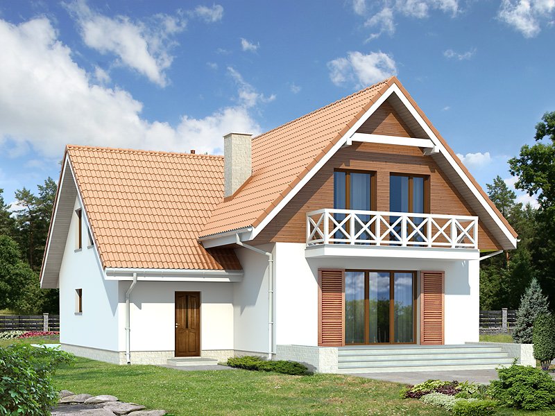 Ściany: 2-warstwowe - pustak ceramiczny + styropian, Stropy: żelbetowe, wylewane, Dach: dachówka, kąt nachylenia 40° i 45°