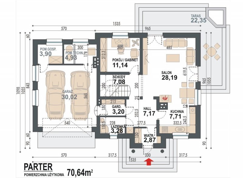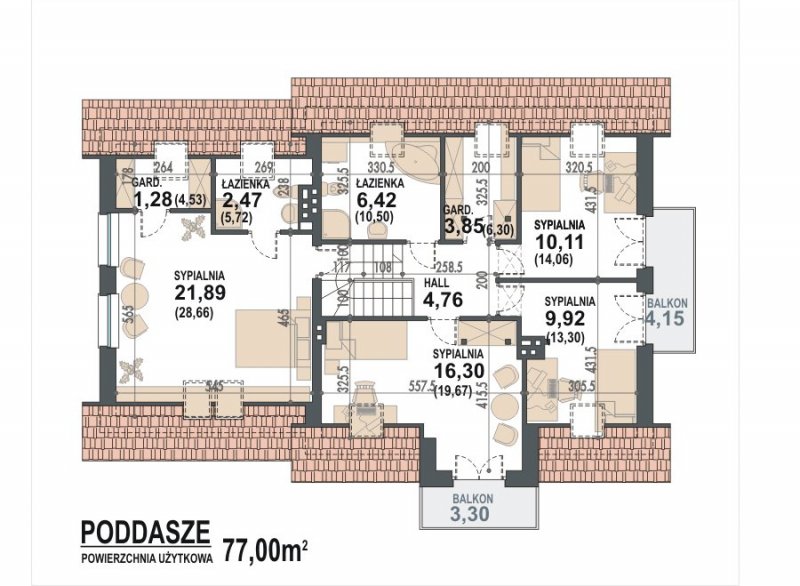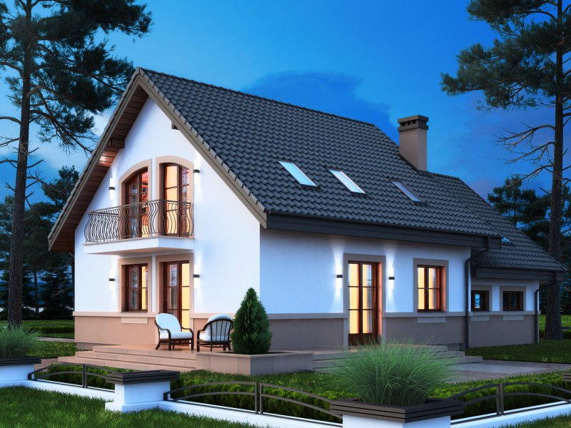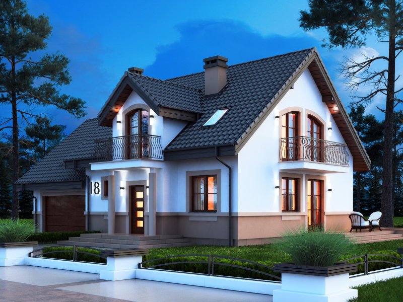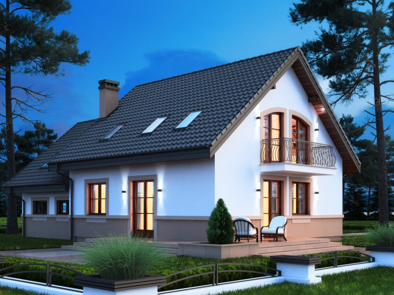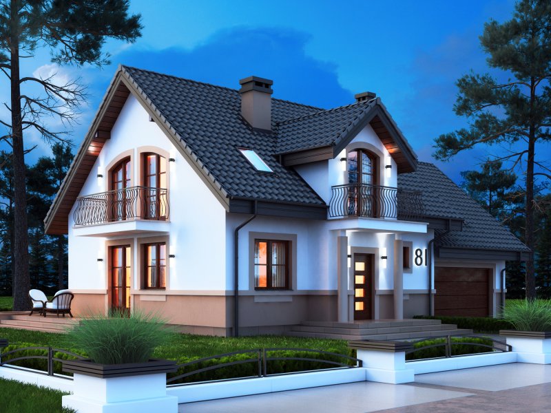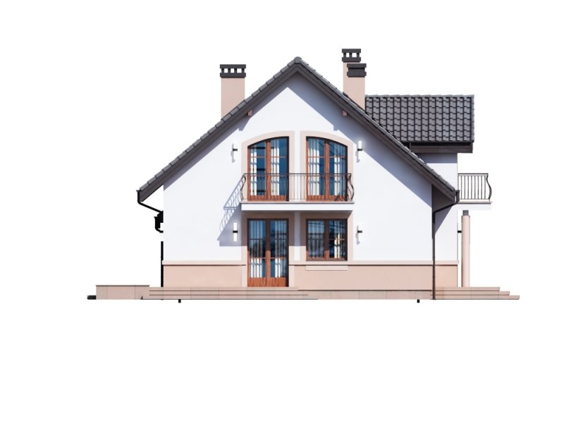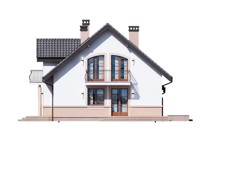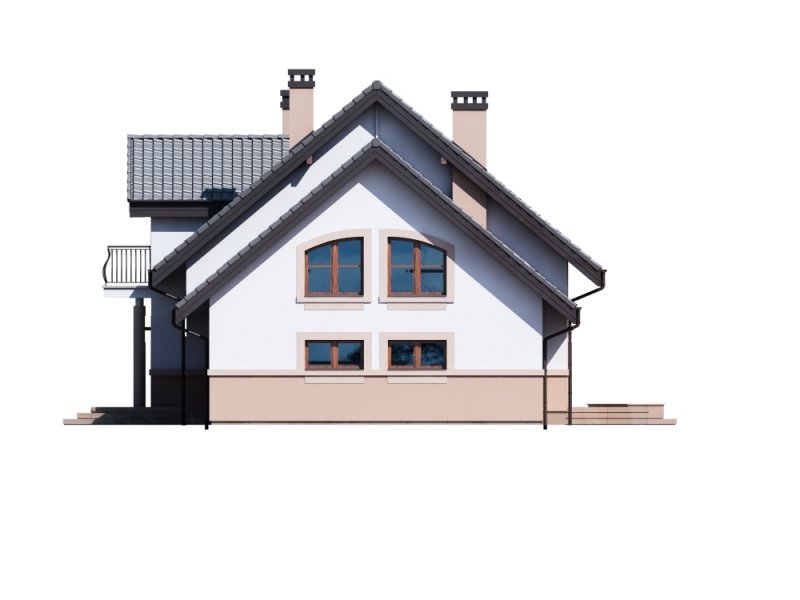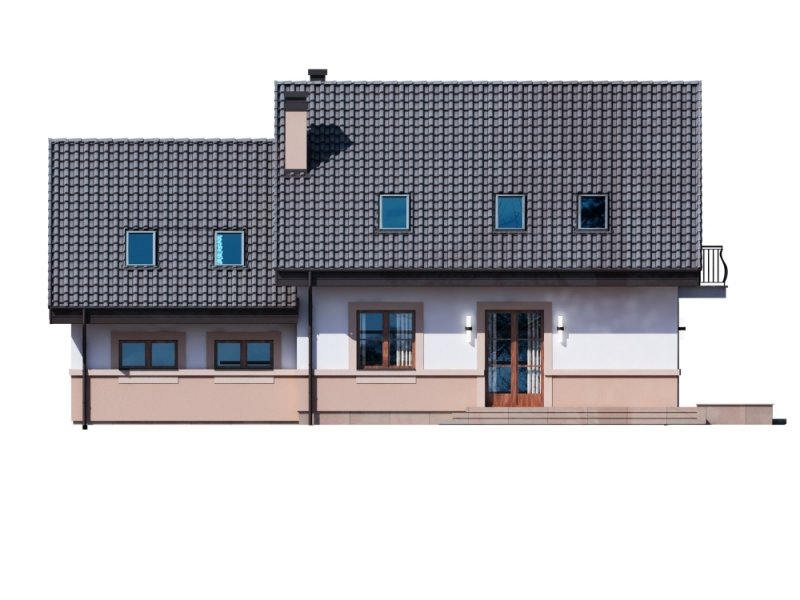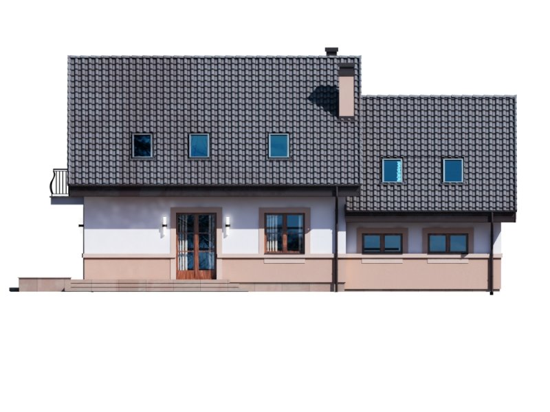 Jednorodzinny dom parterowy z poddaszem użytkowym i garażem dwustanowiskowym (istnieje wersja jednostanowiskowa), niepodpiwniczony, przeznaczony dla 4-6 osób. Na parterze zaprojektowano reprezentacyjny salon z kominkiem i jadalnią, otwartą na salon klatkę schodową ( z możliwością odgrodzenia), pokój (gabinet), kuchnię , łazienkę, garderobę, kotłownię oraz garaż. Na poddaszu zaprojektowano cztery sypialnie (w tym sypialnia rodziców z indywidualną łazienką oraz garderobą) i łazienkę ogólnodostępną,
