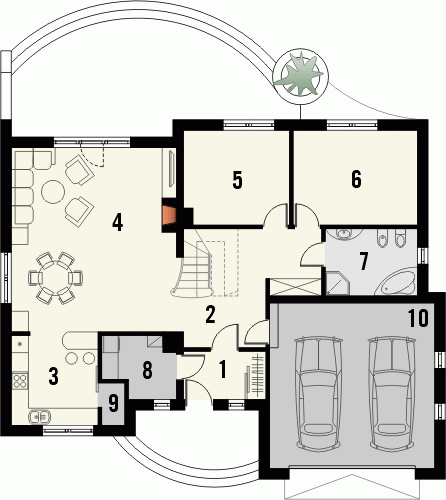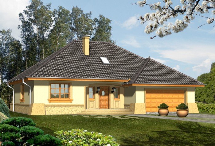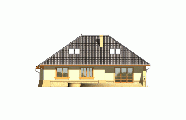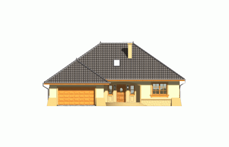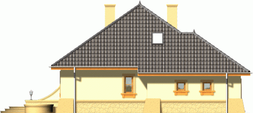 Projekt domu RETRO P zaprasza do wnętrza poprzez strefę wejściową osłoniętą tradycyjnym, łukowym podcieniem. Jest to niepodpiwniczony budynek z garażem dwustanowiskowym, z wszystkimi pomieszczeniami ulokowanymi na kondygnacji parteru. Jego wygląd zewnętrzny zyskał dużo uroku dzięki zastosowaniu podzielonych szprosami okien, gzymsów i opasek oraz podkreśleniu narożników budynku. Projekt jest sprzedawany też w wersji lustrzanej.Pomieszczenia w domu RETRO P. Parter to otwarta przestrzeń salonu, kuchni oraz hallu. Wygospodarowano we wnętrzu dużo praktycznych schowków oraz przestrzeni na szafy w wiatrołapie, przy kuchni oraz w strefie nocnej. Po ewentualnej adaptacji poddasza do dwóch sypialni w przyziemiu mogą dojść dwa następne pokoje, garderoba oraz druga łazienka. Technologie i proponowane materiały. Zastosowano w projekcie najprostszą technologię tradycyjną, ze ścianami z gazobetonu z warstwą styropianu, drewnianą więźbą, dachem pokrytym dachówką oraz stropem gęstożebrowym, dzięki któremu w prosty i tani sposób można później zaadaptować poddasze. Wszystkie materiały można zamienić na inne na etapie adaptacji.