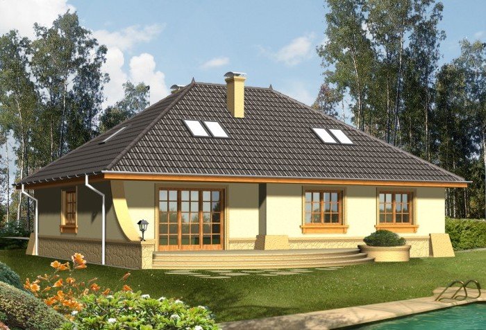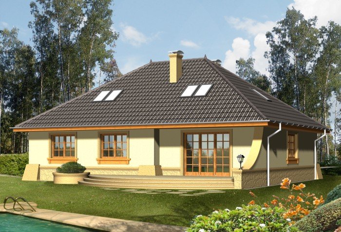 Zastosowano w projekcie najprostszą technologię tradycyjną, ze ścianami z gazobetonu, drewnianą więźbą, dachem pokrytym dachówką oraz stropem gęstożebrowym, dzięki któremu w prosty i tani sposób można później zaadaptować poddasze. Wszystkie materiały można zamienić na inne na etapie adaptacji.