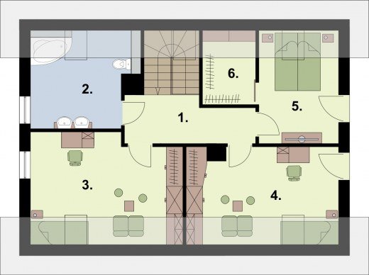 Projekt składa się z części architektonicznej, konstrukcyjnej, wewnętrznych instalacji wod.-kan, c. o. i elektrycznej. W projekcie załączone są podstawowe zestawienie stali, drewna i stolarki okienno-drzwiowej. Do projektu dołączamy bezpłatną zgodę na wprowadzenie zmian, oświadczenie projektantów o wykonaniu projektu zgodnie z obowiązującymi normami i przepisami oraz kserokopie uprawnień projektantów wraz z aktualnym wpisem do izby. W przypadku zamówienia projektu w technologii lekkiej, drewnianej konstrukcji szkieletowej, powierzchnia użytkowa budynku jest o około 7% większa.