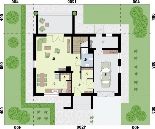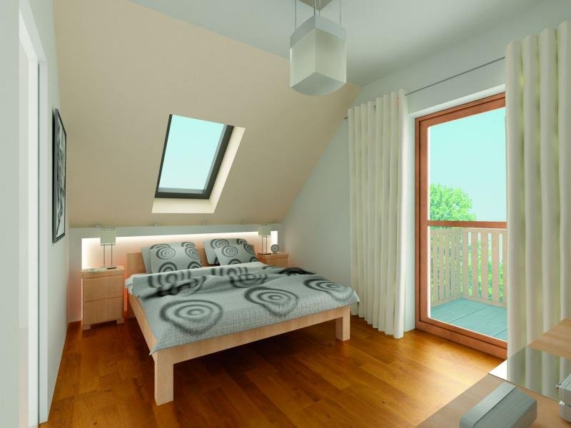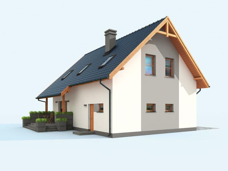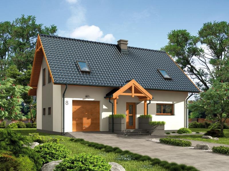 Projekt domu mieszkalnego jednorodzinnego parterowego z poddaszem użytkowym i garażem jednostanowiskowym.
