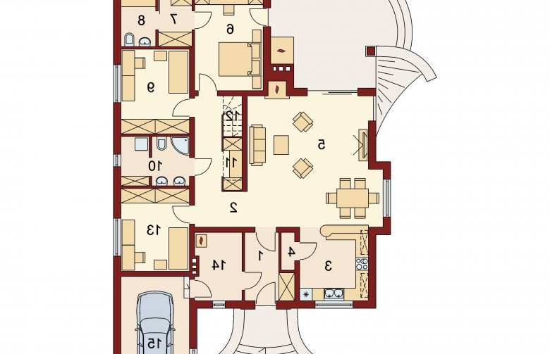 Projekt w standardzie posiada dodatkowo projekt ogrzewania kominkiem z płaszczem wodnym.