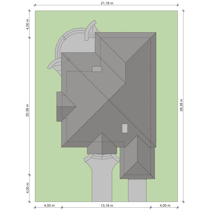 - Powierzchnia dachu 296.00 m²