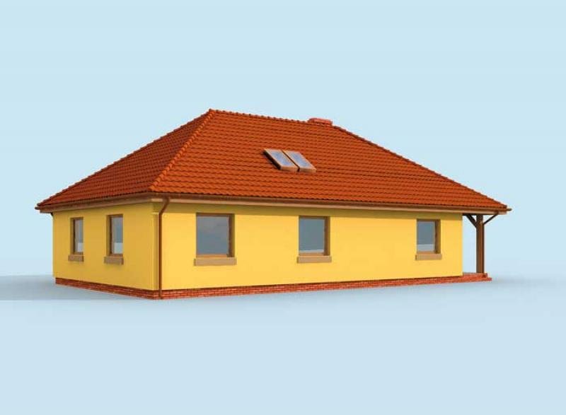 SANTA FE 2 - dom mieszkalny wolnostojący, parterowy ze strychem. Ten słoneczny dom, przynosi na myśl zabudowę rodem z południa Europy. Jest to zasługą jasnych elewacji i dużych przeszklonych drzwi, które wiodą z salonu na taras. Całości dopełniają stylowe drewniane kolumny wspierające dach. Atutem Santa Fe 2 są również racjonalnie rozplanowane wnętrza. Z pokoju dziennego, podobnie jak z połączonej z nim kuchni, można wyjść na taras, co znacznie ułatwia organizację imprez w ogrodzie, czy też urozmaica codzienne posiłki. Poza tym na parterze są dwie sypialnie, kuchnia z jadalnią, kotłownia, dwie łazienki z osobną toaletą. Na piętrze znajdziemy jedno pomieszczenie do dowolnej adaptacji. Santa Fe 2 to bez wątpienia dom, zapewniający jego mieszkańcom komfort i swobodę. Z pewnością warto wziąć go pod uwagę w trakcie wyboru nowego domu. Projekt składa się z części architektonicznej, konstrukcyjnej, wewnętrznych instalacji wod.-kan, c. o. i elektrycznej. W projekcie załączone są podstawowe zestawienie stali, drewna i stolarki okienno-drzwiowej. Do projektu dołączamy bezpłatną zgodę na wprowadzenie zmian, oświadczenie projektantów o wykonaniu projektu zgodnie z obowiązującymi normami i przepisami oraz kserokopie uprawnień projektantów wraz z aktualnym wpisem do izby. W przypadku zamówienia projektu w technologii lekkiej, drewnianej konstrukcji szkieletowej, powierzchnia użytkowa budynku jest o około 7% większa.