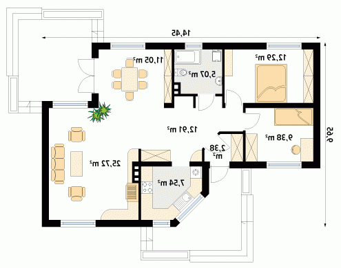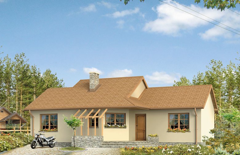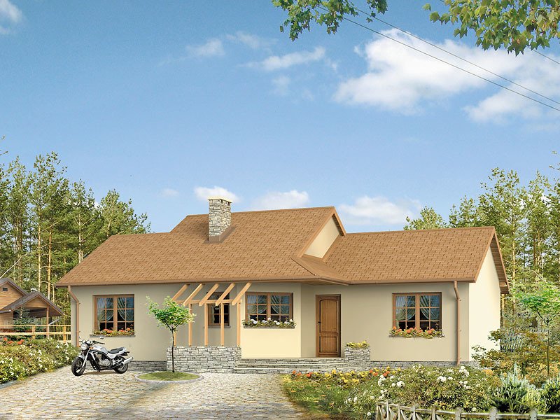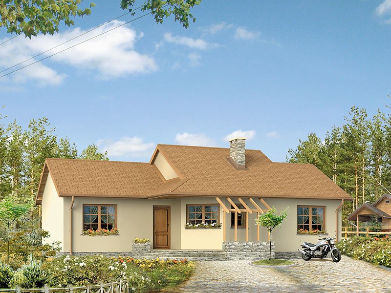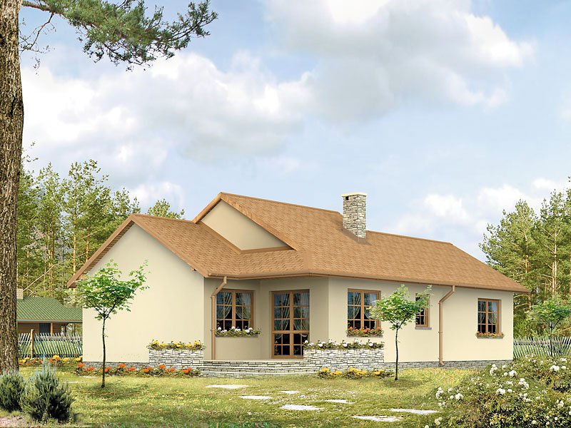 Dom jednorodzinny, parterowy, niepodpiwniczony. Przeznaczony dla 3-osobowej rodziny (2 sypialnie). Dom posiada 2 duże tarasy.