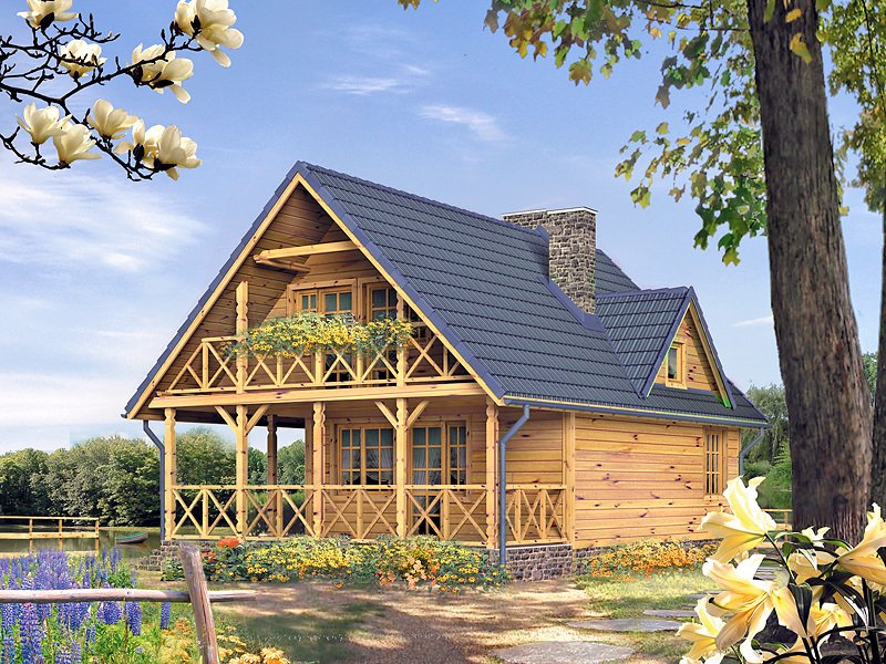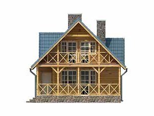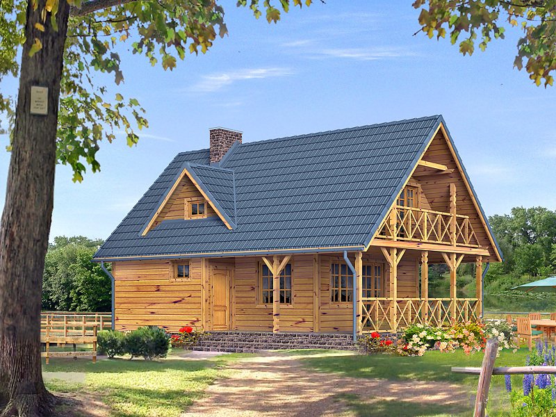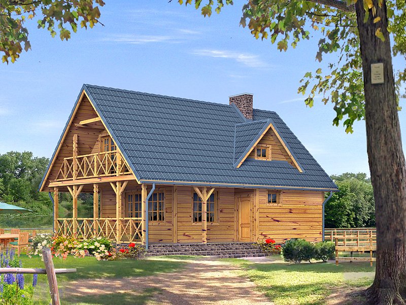 Ściany: szkielet drewniany, Stropy: na belkach drewnianych, Dach: dachówka bitumiczna, kąt nachylenia 45°